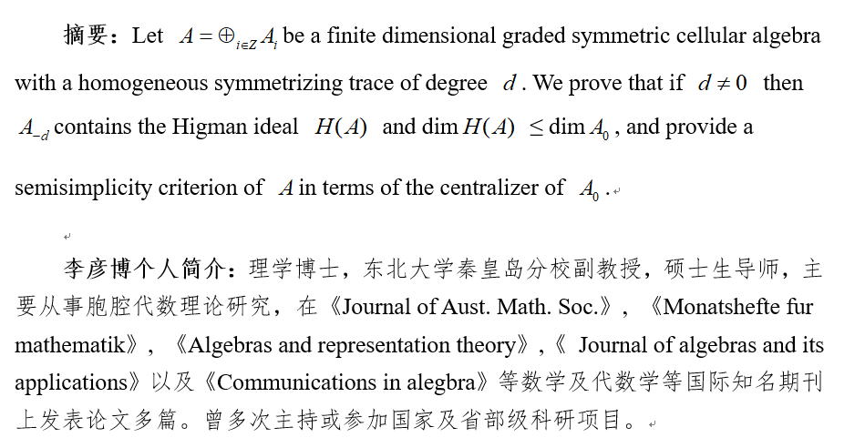 报告人:李彦博副教授(东北大学秦皇岛分校)