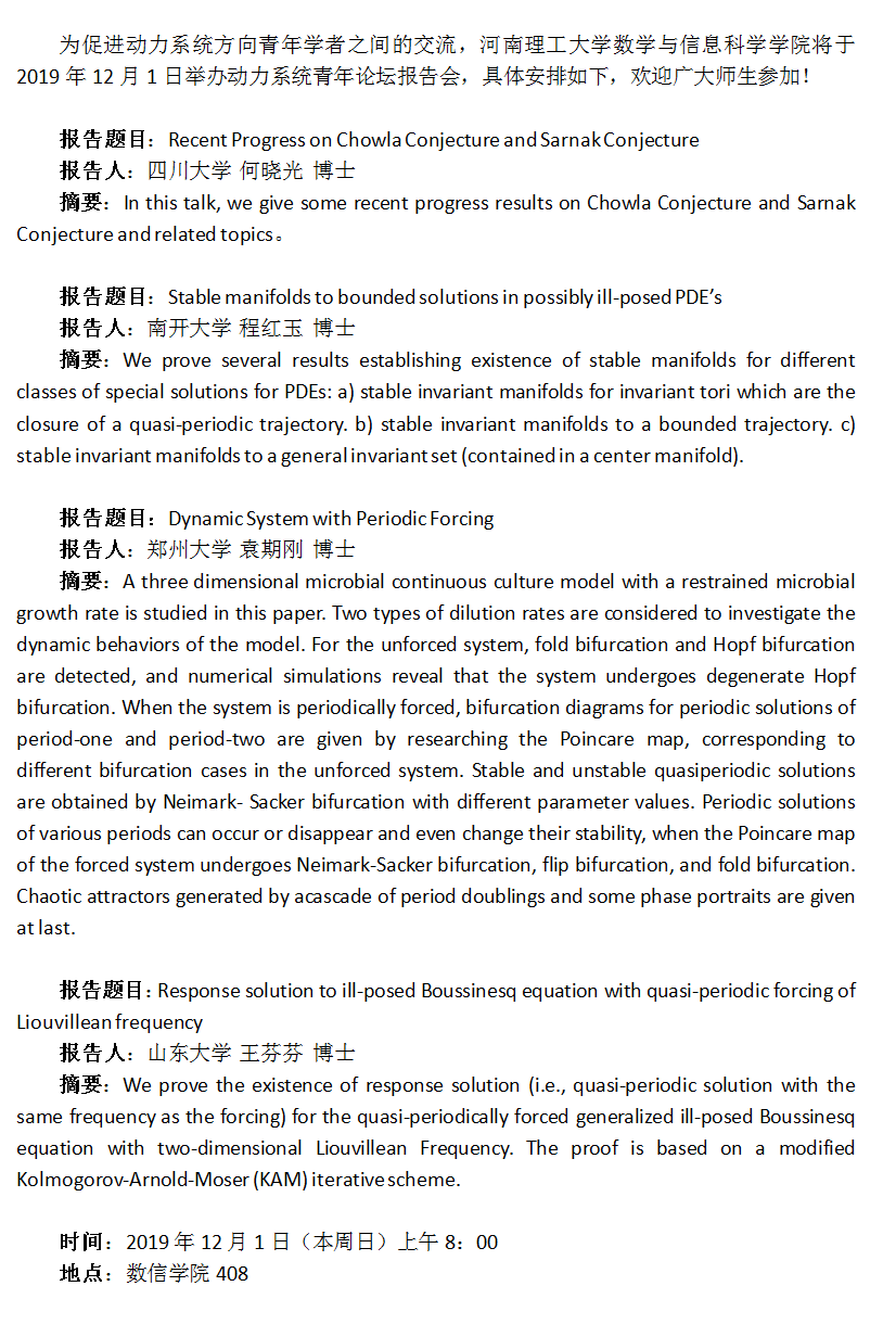 中科院数学与系统科学研究院韩丕功研究员系列讲座