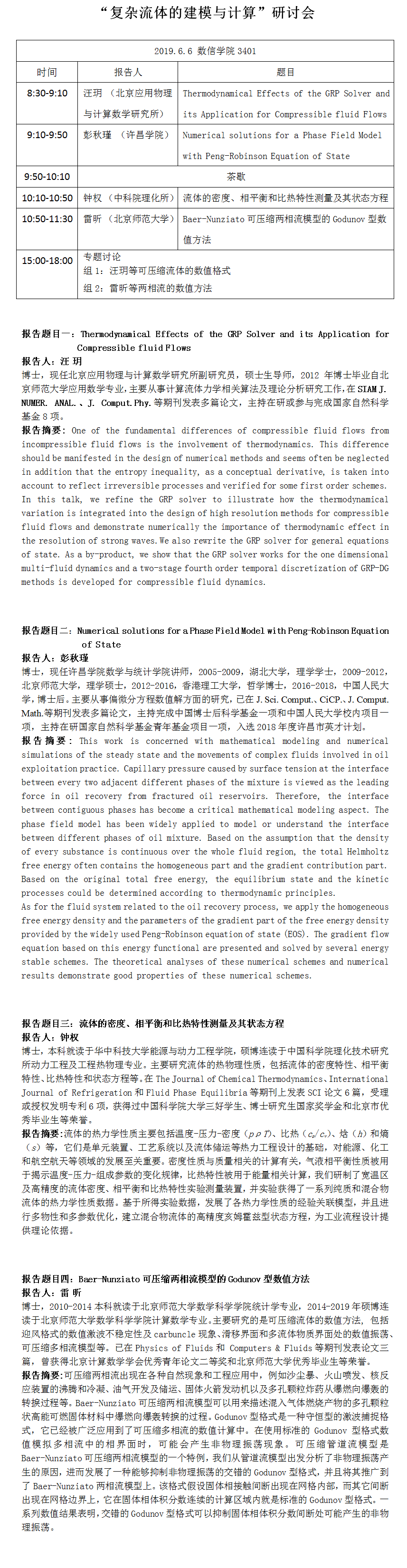 “复杂流体的建模与计算”研讨会
