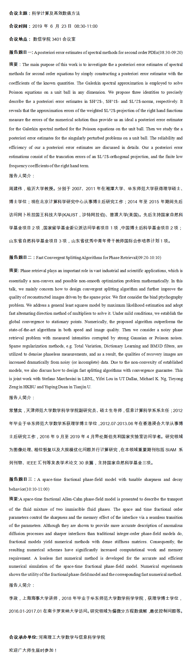 数学应用与科学计算青年学者学术论坛