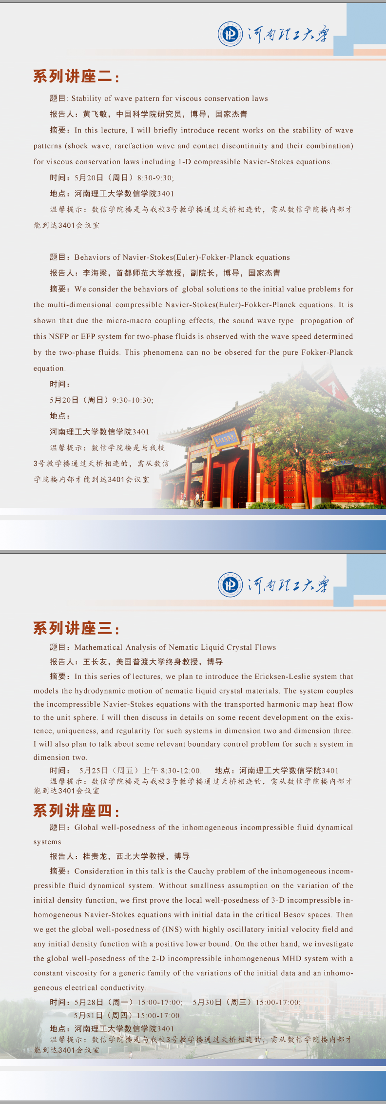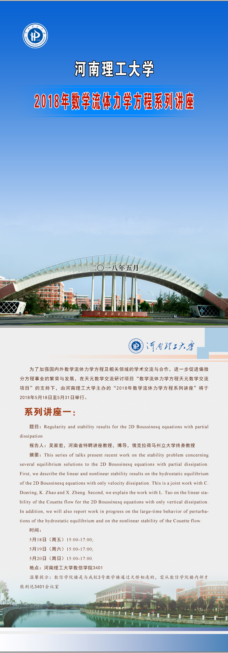 2018年数学流体力学方程国际研讨会及系列讲座-日程安排