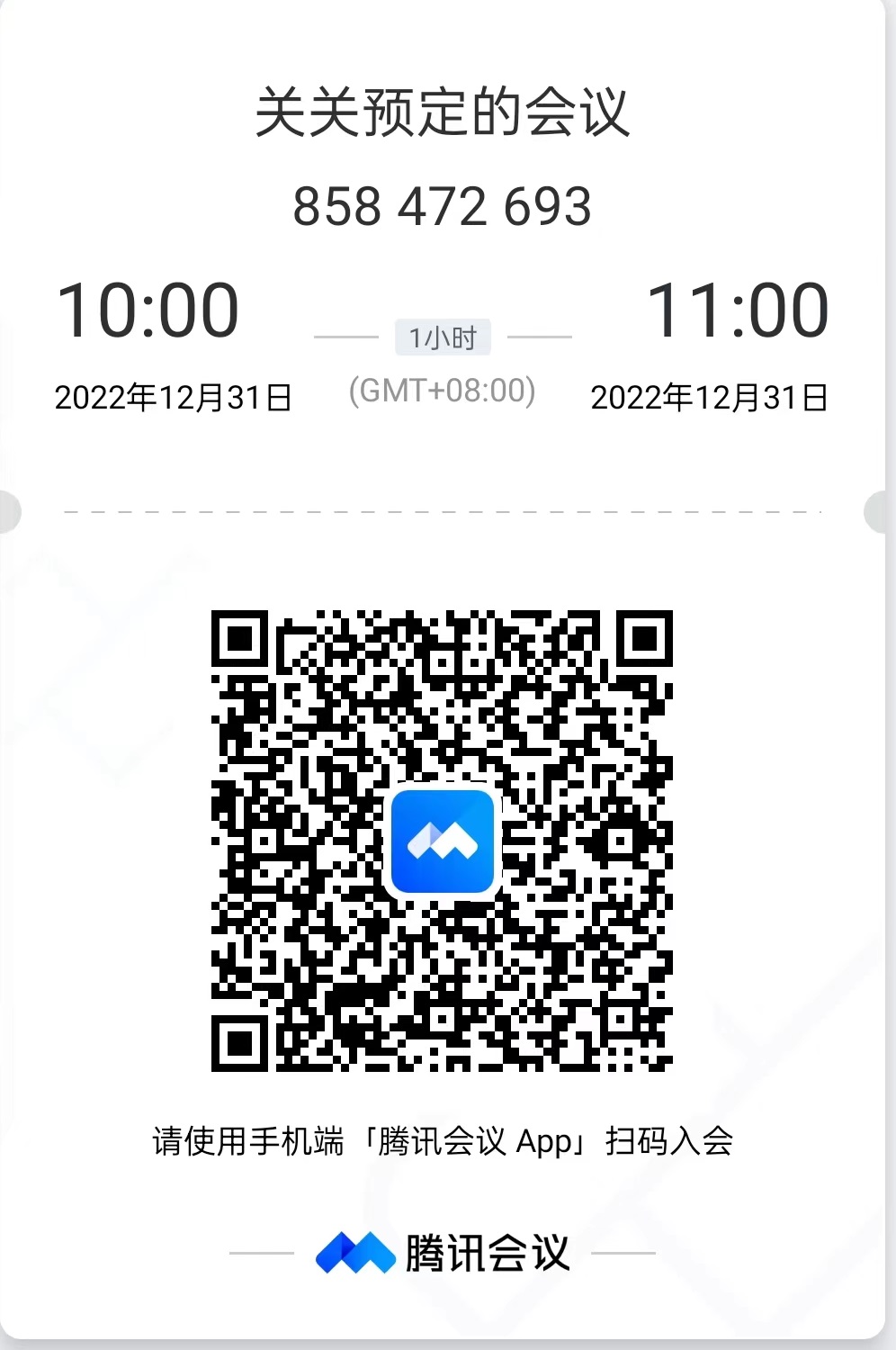 明天(12月31日)上午10点到11点学院召开处级领导班子和领导干部2022年度考核民主测评会议的腾讯会议二维码