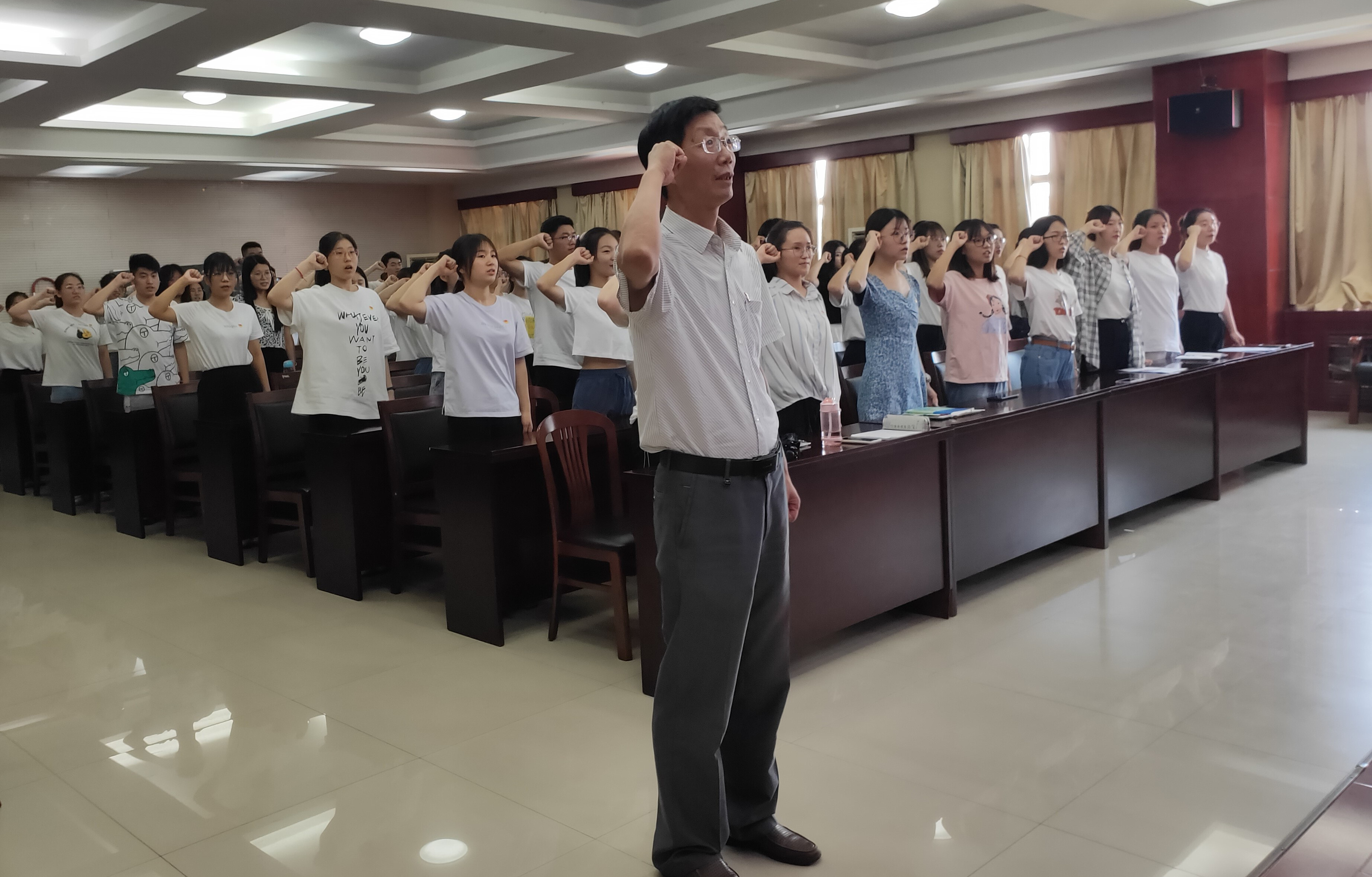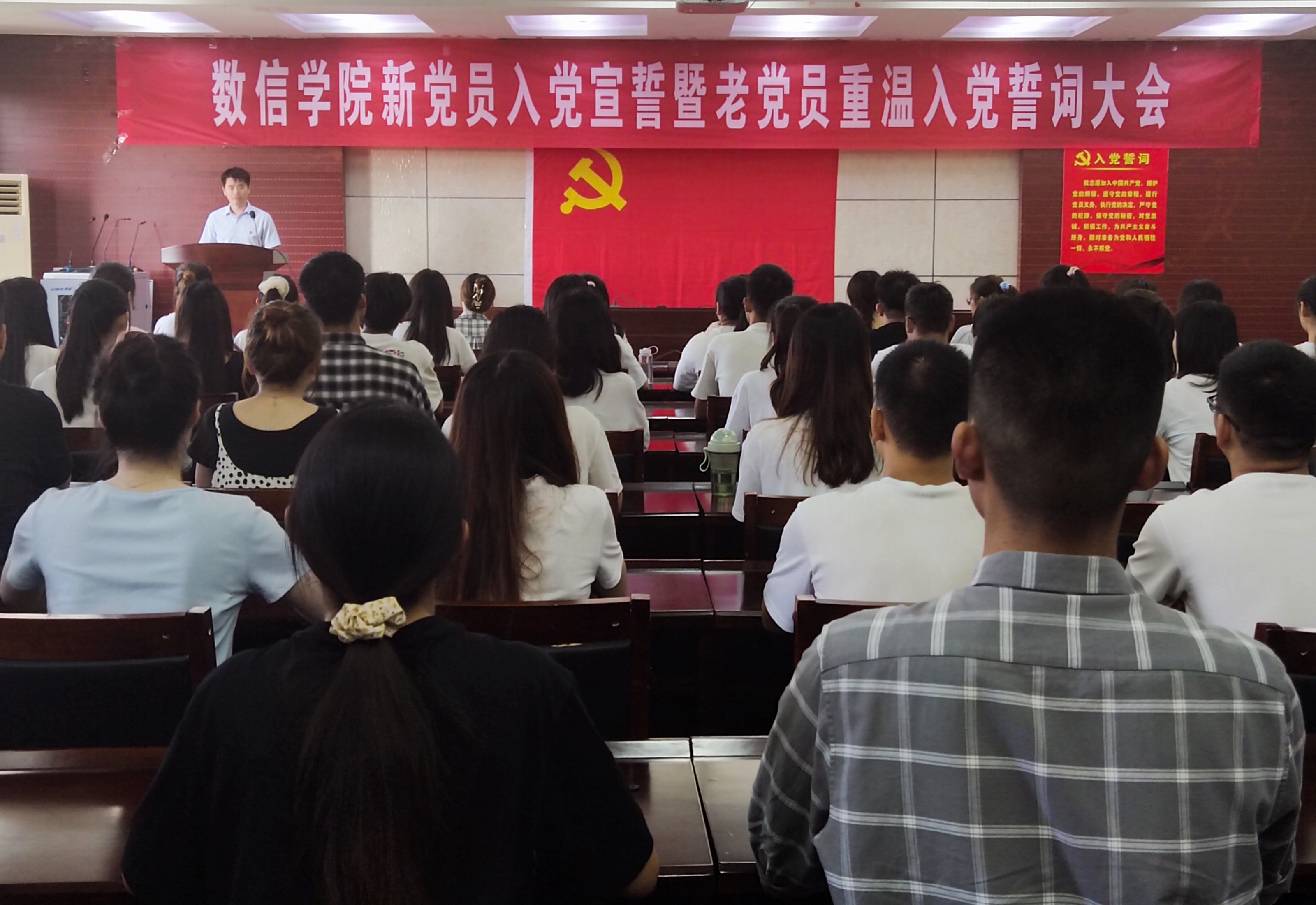 为庆祝中国共产党成立100周年,6月29日下午,开云kaiyun官网在3401报告厅召开新党员入党宣誓暨老党员重温入党誓词大会。学院党委书记成军祥、党委副书记李伟亮、团委书记王孝华、学工办主任牛芳、专职辅导员田海燕和全体学生党员共计80余人参加了大会,大会由李伟亮同志主持。