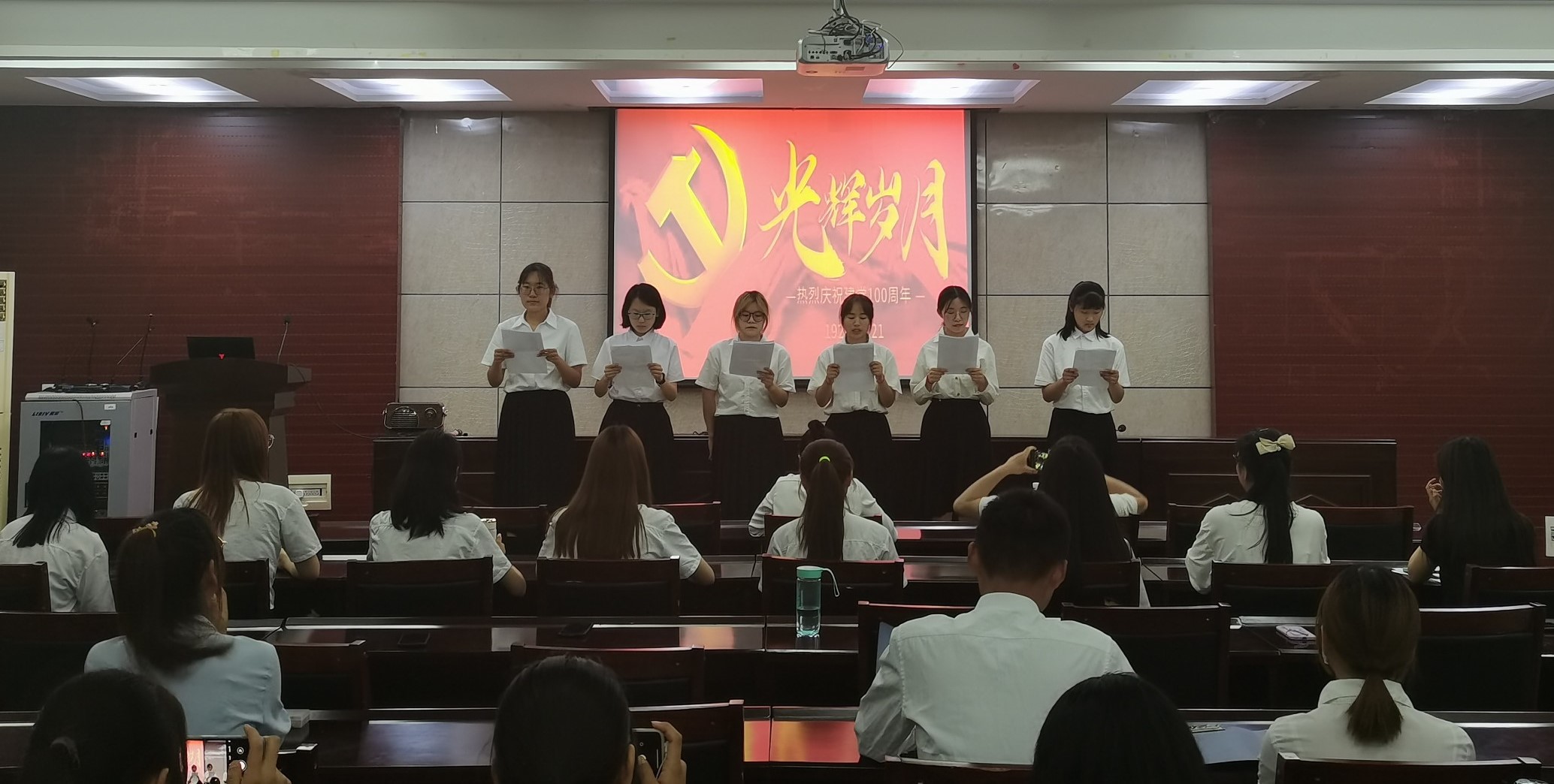 本次诵读经典主题竞赛共有六支队伍参赛。选手们精心准备比赛,选择红色经典文章,诵读《红船,从南湖起航》《百年庆典》《可爱的中国》《唱支山歌给党听》《祖国啊,我亲爱的祖国》《七月的天空》展现了党的发展历程和辉煌历程,歌颂了祖国母亲的光辉伟大,展现了炎黄子孙对党和国家的自豪感和美好祝愿。