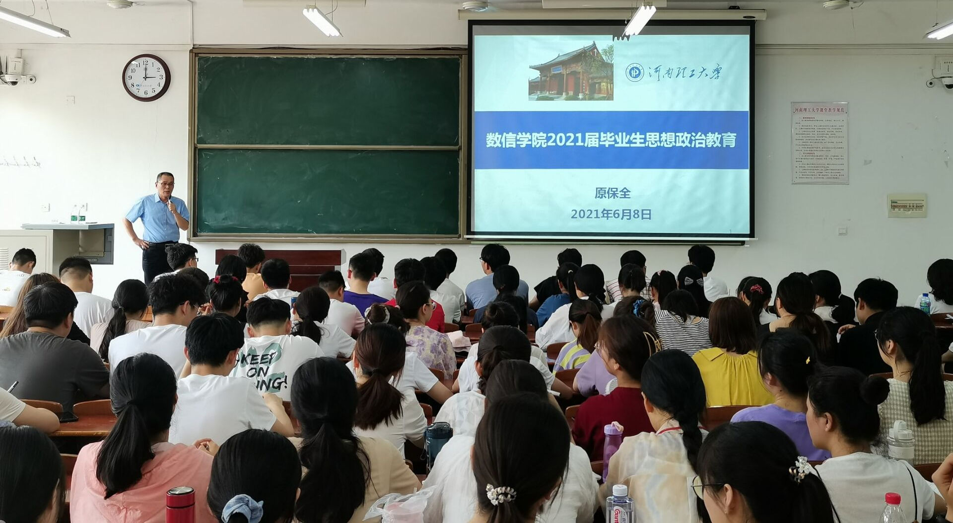 为进一步提升毕业生的理论修养和政治素养,坚定信心迎接未来的挑战,6月8日下午,开云kaiyun官网在三号教学楼3206教室进行思想政治教育讲座。院长原保全担任主讲人,为2021届本科毕业生上思政课。