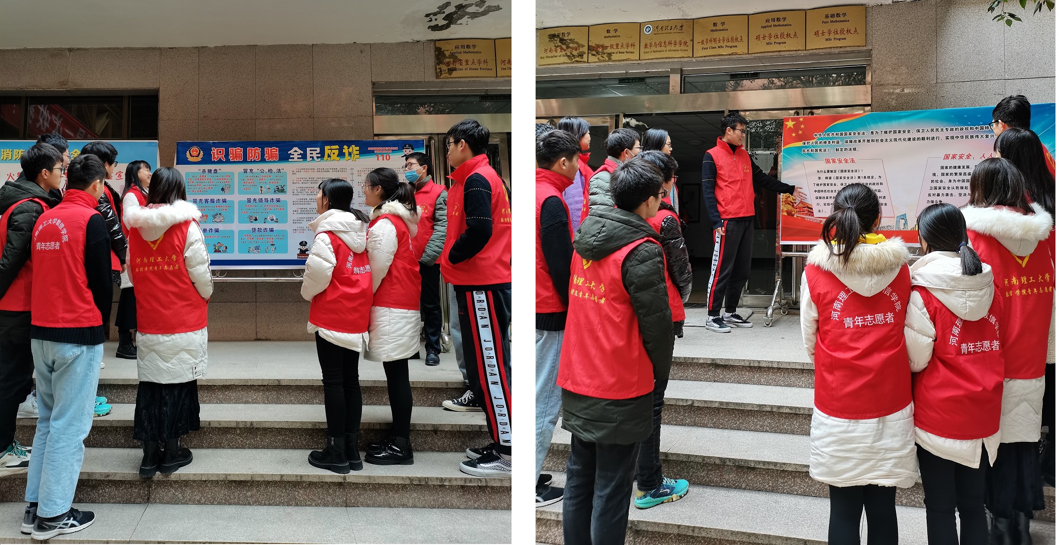 活动旨在强化师生法律意识,提高依法维权的能力和法律素质,引起更多人关注《中华人民共和国国家安全法》和反诈骗中涉及《关于办理电信网络诈骗等刑事案件适用法律若干问题的意见》。活动伊始,志愿者给周边的学生介绍了国家安全法以及网络诈骗相关案例。随后,大家相继发言,表示学习法律法规的重要性以及宣传活动对于弘扬法治精神和营造法治校园具有重要意义。