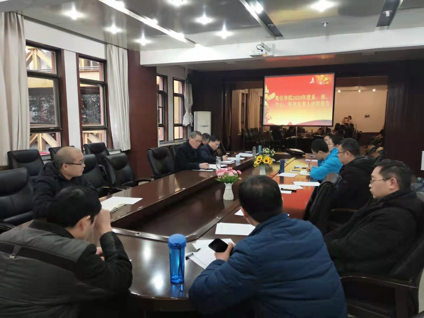 首先由各系部和科室负责人对所分管的年度工作完成情况进行介绍,分析取得的成绩、积累的经验、存在的问题,围绕2021年重点工作和学院“十四五”发展规划提出意见和建议。