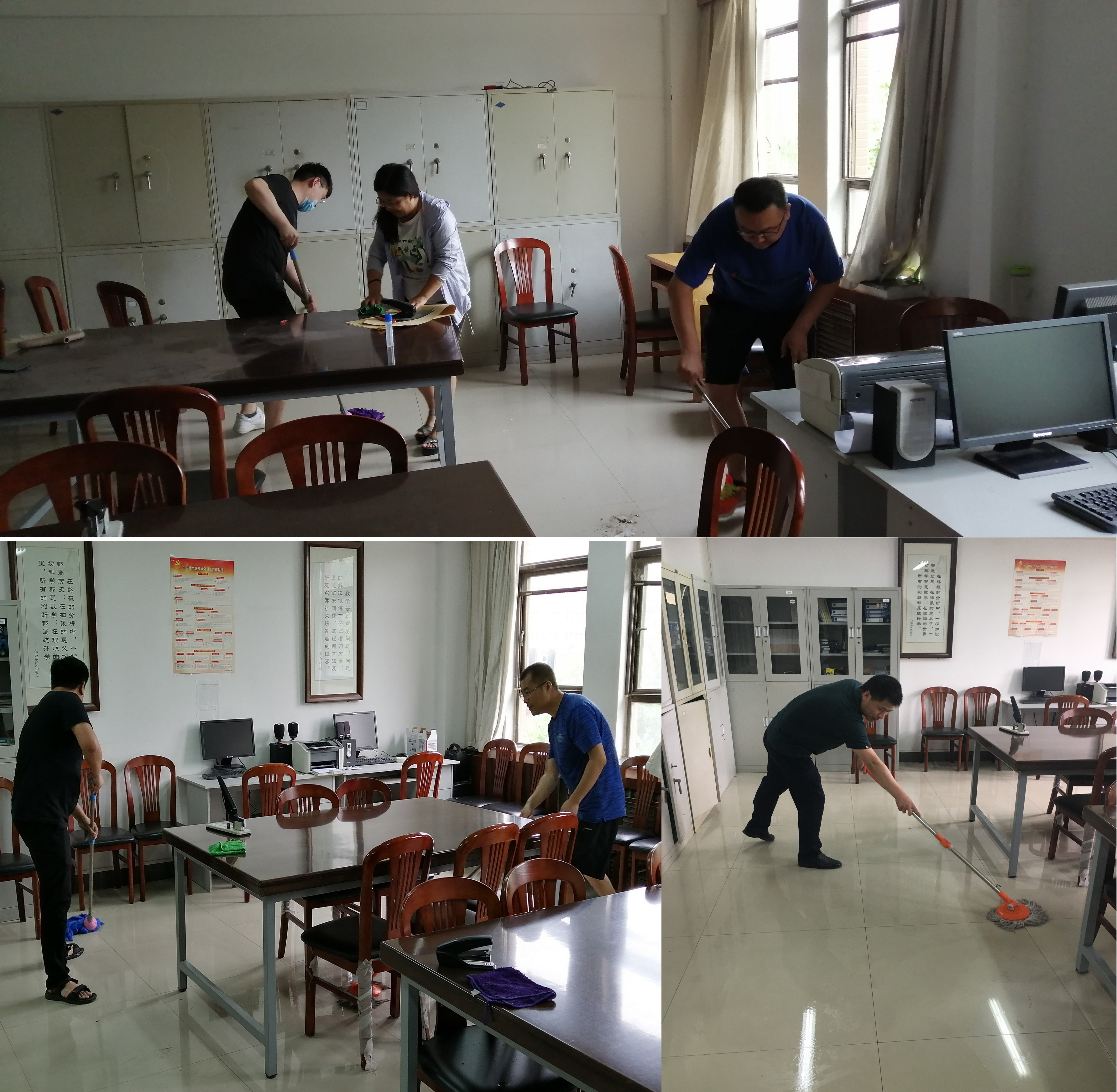 6月2日下午,数学与应用数学系党支部的同志们响应支部号召,对学院楼403和404室进行了清洁打扫工作。党员们分工明确,积极行动,默契配合,清扫教室地面、卫生死角,擦拭窗户、桌子,捡拾垃圾等。经过大家约2个小时的努力,教研室卫生状况得到明显改善,创建出了一个更加卫生、整洁、优美、舒适的工作环境。同志们个个干劲十足,打扫的十分仔细,显示出了支部党员饱满的热情和积极的状态,充分发挥了党员服务师生、不怕苦不怕累的精神。