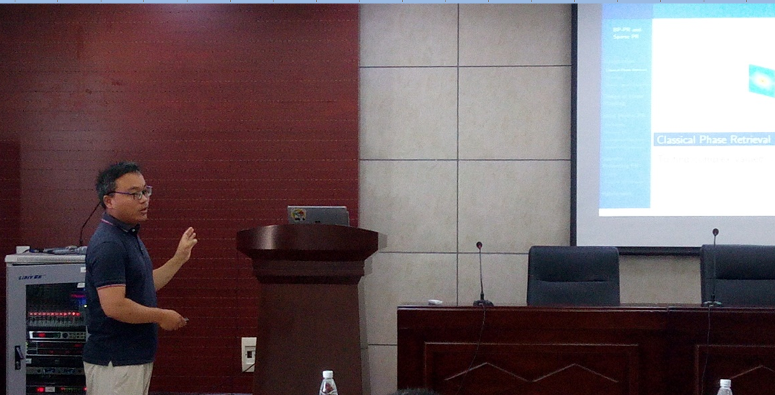 报告中,常慧宾副研究员首先介绍了相位恢复在工业中的应用背景,并指出它在数学上是一个非凸并且可能非光滑的优化问题;报告重点介绍了如何设计收敛的分裂算法,从而进一步提高稀疏先验驱动下重建图像的质量;由于所建立模型的非凸性,报告还讨论了如何设计具有收敛保证的快速分割算法。报告结尾,还介绍了所在美国劳伦斯国家实验室团队小组的部分工作以及未来动向。
