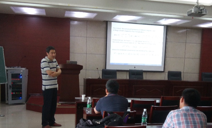 2019年6月21日-23日,临沂大学周建伟教授、天津师范大学常慧宾副研究员以及上海海事大学李政博士应邀来开云kaiyun官网进行学术交流。三位青年学者于23日上午08:30-11:00在开云kaiyun官网3401分别作题为“A posteriori error estimates of spectral methods for second order PDEs”、“Fast Convergent Splitting Algorithms for Phase Retrieval”以及“A space-time fractional phase-field model with tunable sharpness and decay behavior”的学术报告。论坛由开云kaiyun官网牛海峰副教授主持,报告吸引了计算数学专业方向的师生前来参加,并引起了广泛讨论。