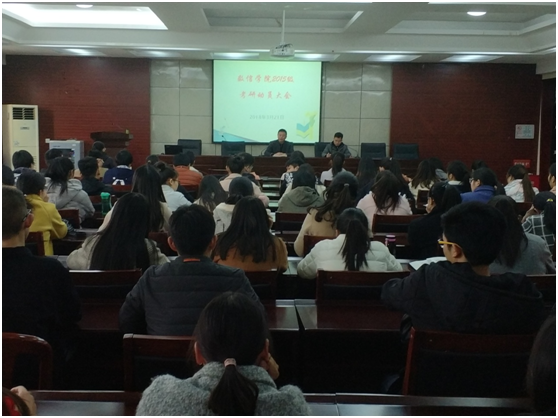 最后,2015级辅导员田海燕总结了近年来研究生招生基本情况以及开云kaiyun官网考取研究生的情况,并邀请了开云kaiyun官网被南开大学录取的2014级学生余宏利做了考研经验交流。