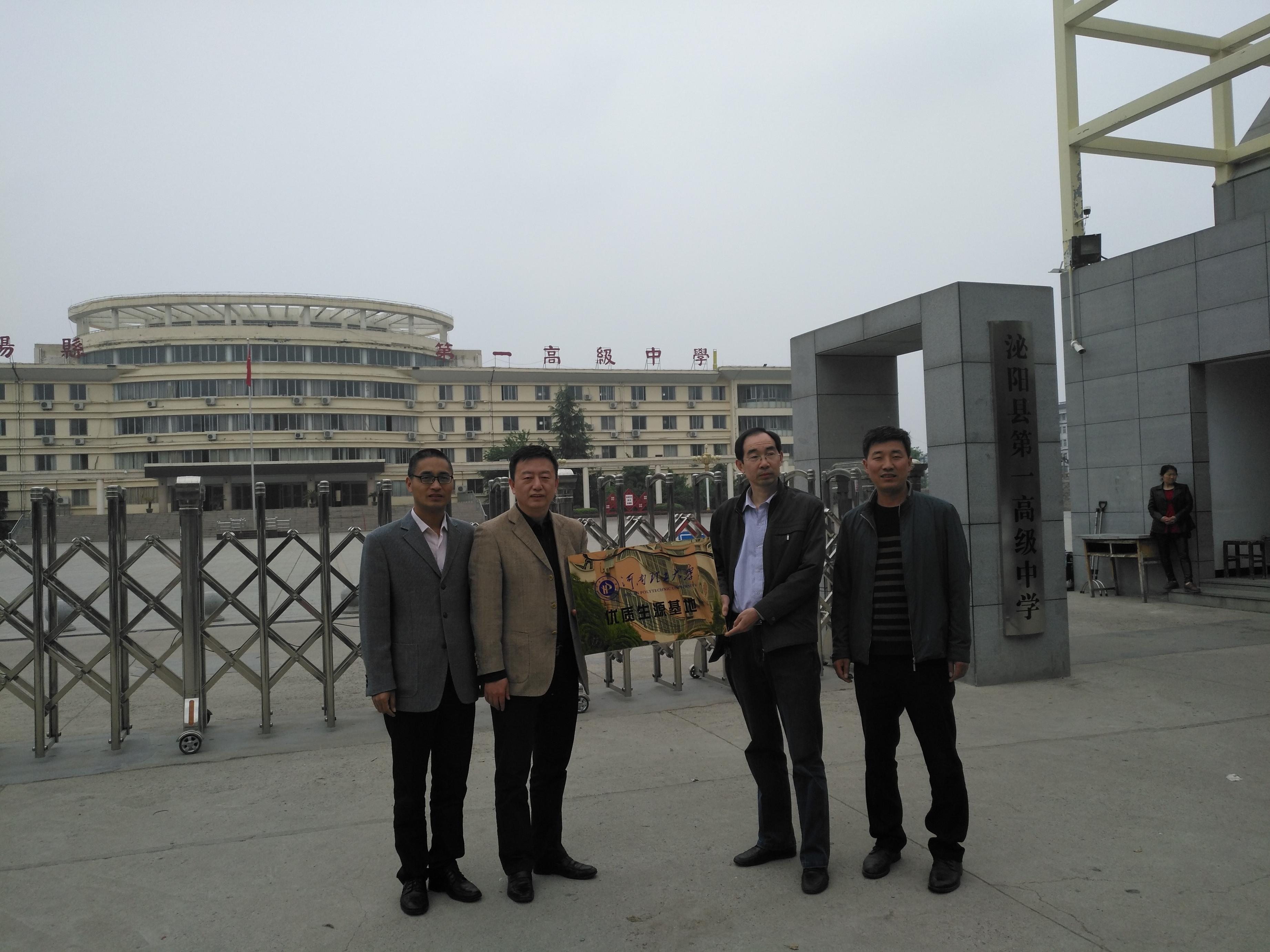 为适应招生制度改革的新形势,进一步提升我校生源质量,积极落实《河南理工大学关于进一步加强招生宣传工作的意见》文件精神, 积极做好招生宣传工作,不断提高我校的社会影响力,根据学校招生就业处的统一部署,4月25-26日,数信学院党委副书记沈立等一行前往驻马店市进行优质生源基地考察、洽谈,并代表学校与驻马店市泌阳县第一高级中学、遂宁县第二高级中学签订优质生源基地合作协议。