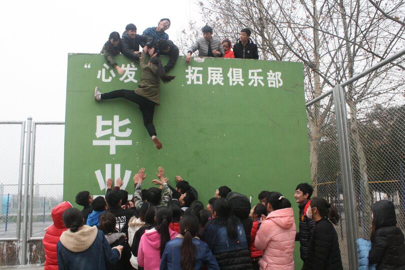 本次活动以小组为单位,共设置了“高空断桥”、“信任背摔”和“毕业墙”三个游戏拓展项目。活动在快速报数的小游戏中开始,同学们迅速进入群情激昂的状态。接下来,同学们分为两组分别进行“高空断桥”和“信任背摔”项目。“信任背摔”项目锻炼了同学们的团队合作力及团队成员信任力。“高空断桥”项目使同学们在克服恐惧、战胜自我、超越自我中激发无限潜能,提高面对挑战应具备的生存能力和适应能力,从而提升综合素质。最后,同学们共同参与“毕业墙”项目,当最后一名同学翻越围墙的刹那,现场响起一片激动的欢呼声,同学们在收获感动的同时,对信任和互助以及团队凝聚力和创造力的重要性有了更深的体会。