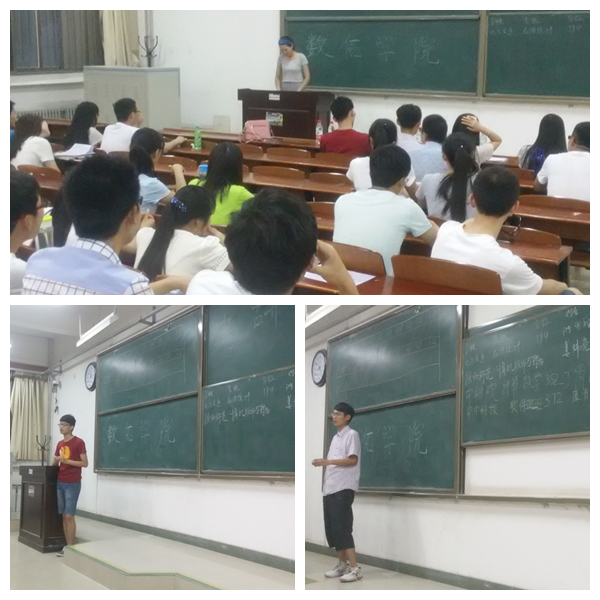 在交流会上,陈雪丽向与会同学介绍了自己考研的经历、收获、学习方法和时间安排,并用“世界上没有走不通的路,只有不想走路的人”鼓励同学们奋发向上,努力拼搏。姜炜亮向同学们分享了在初试、复试中遇到问题如何解决,他语言诙谐,让大家在轻松愉快的氛围下学到了宝贵的经验。康清宇分享了考研期间坚持的重要性,并建议大家组成考研小分队,互相监督,共同进步。张侠讲述了自己在考研期间如何克服困难,坚定目标。丁倩倩四年如一日,坚持不懈,勤奋学习,成功考上了中科院数学与系统科学研究院。在自由交流环节同学们积极踊跃地向5位毕业生咨询自己在考研中遇到的各种问题,毕业生耐心、细致地为同学们一一作了解答。