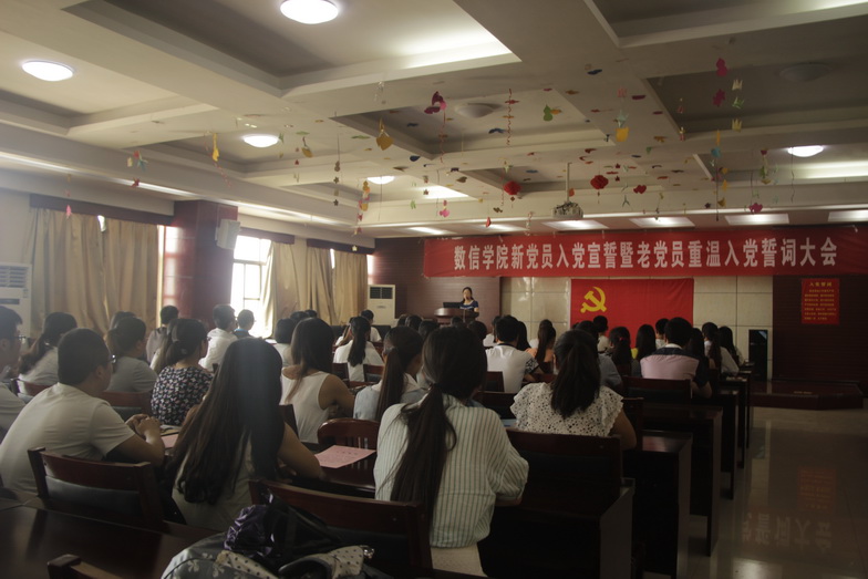 为庆祝中国共产党成立94周年,纪念中国人民抗日战争暨世界反法西斯战争胜利70周年,2015年7月1日下午,开云kaiyun官网在3401会议室召开新党员入党宣誓暨老党员重温入党誓词大会。院党委书记李慧敏、副院长邓继恩、副院长景书杰和全体学生党员共计50余人参加了大会,大会由牛芳同志主持。