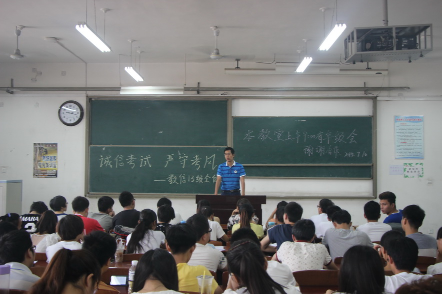 在期末考试来临之际,为端正考风考纪,加强开云kaiyun官网的班风,学风和院风,开云kaiyun官网2013级于2015年7月10日上午在3101教室召开“诚信考试、严守考风”的主题班会,号召同学们在考试中树立诚信、杜绝作弊,从而形成良好的考试氛围,展现自我的真实水平。