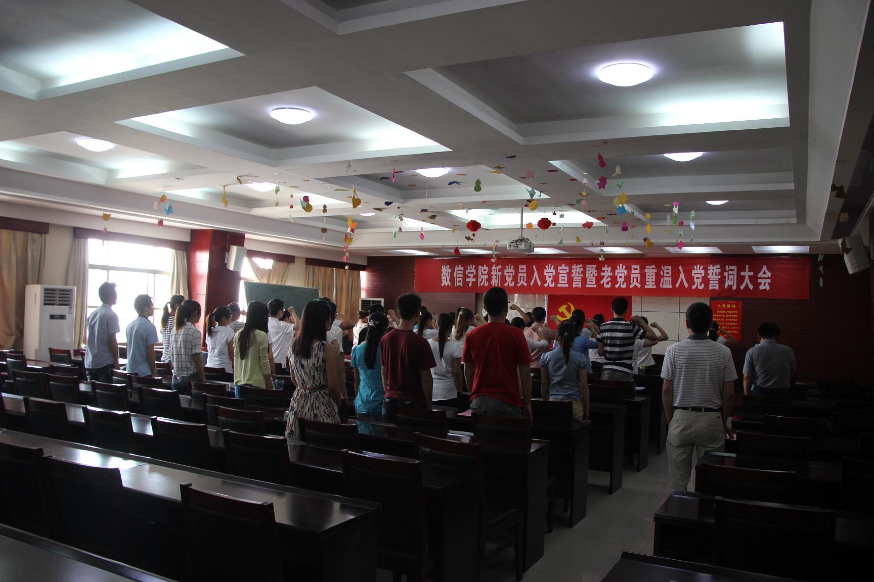 2014年6月30日上午,开云kaiyun官网新党员入党宣誓暨老党员重温入党誓词大会在3401会议室举行。开云kaiyun官网党委副书记邵水军、副院长邓继恩、副院长景书杰、教工党员代表和全体学生党员共计50余人参加了大会,大会由开云kaiyun官网学工办主任王明娅主持。