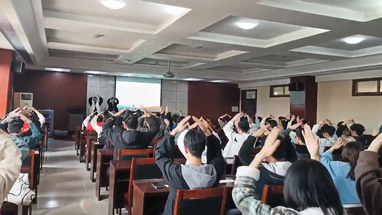 首先,马娟老师先通过简单日常词语的手语教学,例如“你好”、“谢谢”等,由浅入深到日常的对话,例如“很高兴认识你”,“欢迎来到河南理工大学”等,调动大家学习的积极性。随后,随着马娟老师手指如蝴蝶般上下翻飞,每个关节都能灵活优雅地“说话”,志愿者们赞叹不已。在她的指导下,同学们开始尝试,无声的手指代替了言语表达,变得生动有趣。最后,在抽卡片互动环节,同学们都积极踊跃参与,每组两个人用手语进行对话交流,感受聋人世界交流的微妙。马娟老师邀请搭档一起进行“感恩的心”手语教学。同学们用手语向世界表达无声胜有声的感恩,原本普通的歌曲,通过肢体和手指的演绎进一步传达歌曲中真挚的情感,感恩即是灵魂上的健康。