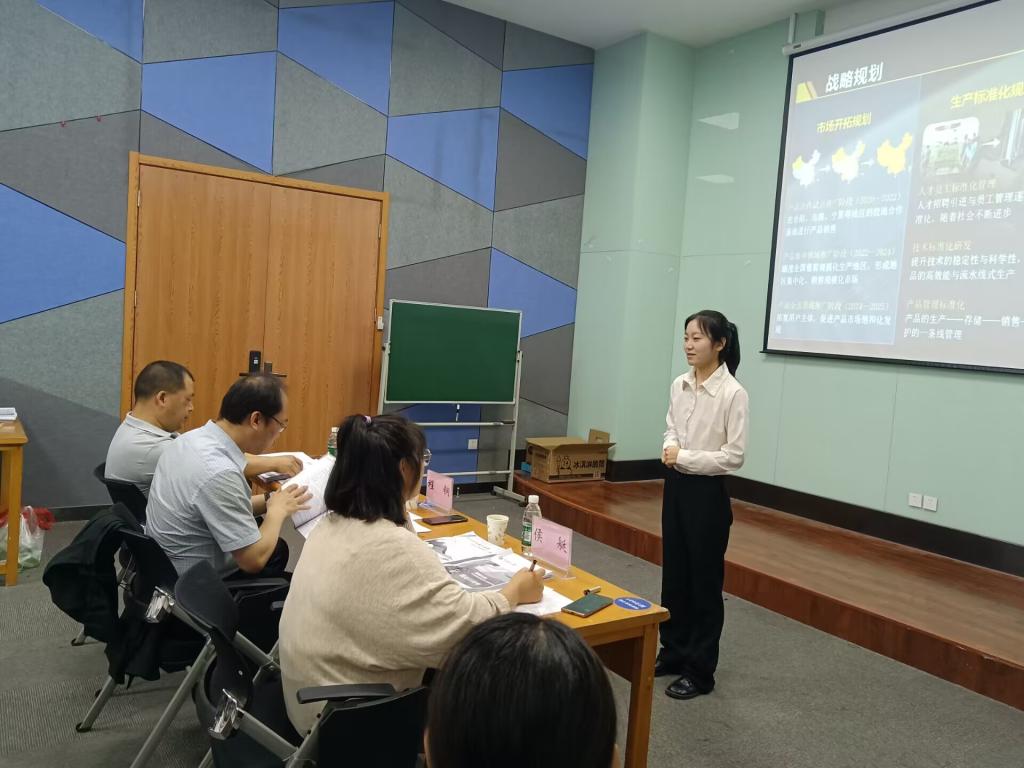比赛以“汇报+答辩”的形式进行。比赛中,各参赛队伍讲解员以PPT的形式就团队结构、项目背景和介绍、核心技术、市场优势、市场分析和定位及项目产生的社会价值和发展前景等方面进行重点阐述。他们较好地展现了数信学子的奇思妙想,敢闯与敢创。答辩环节,各评委就各参赛项目实施的可行性、竞品分析、产品质量、成本、销售及项目的未来发展等问题进行点评,并对项目中有待解决的难点问题提出了指导性建议,鼓励学生大胆创新,以社会效益为主,经济效益为辅,综合提高项目的社会价值维度。