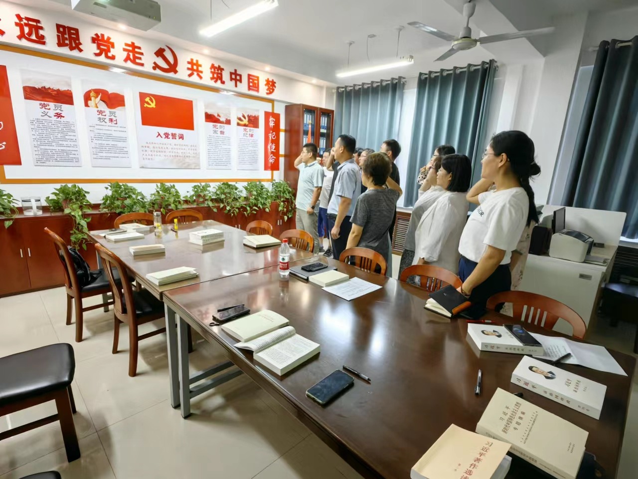 会上,支部全体党员首先开展了“重温入党誓词”活动,在刘春德的带领下,大家举起右拳,面向党旗庄严宣誓,重温入党时对党和人民作出的庄严承诺,更加坚定了对党的信仰,进一步增强了党员意识、党性意识、先锋意识,涵育了党性修养。大家表示,在教学科研工作中,要牢记党员身份,牢记初心和使命,时时处处发挥先锋模范作用,展现党员教师的责任和担当,努力做一名“四有”好教师、合格党员,为学院事业做出更大贡献。