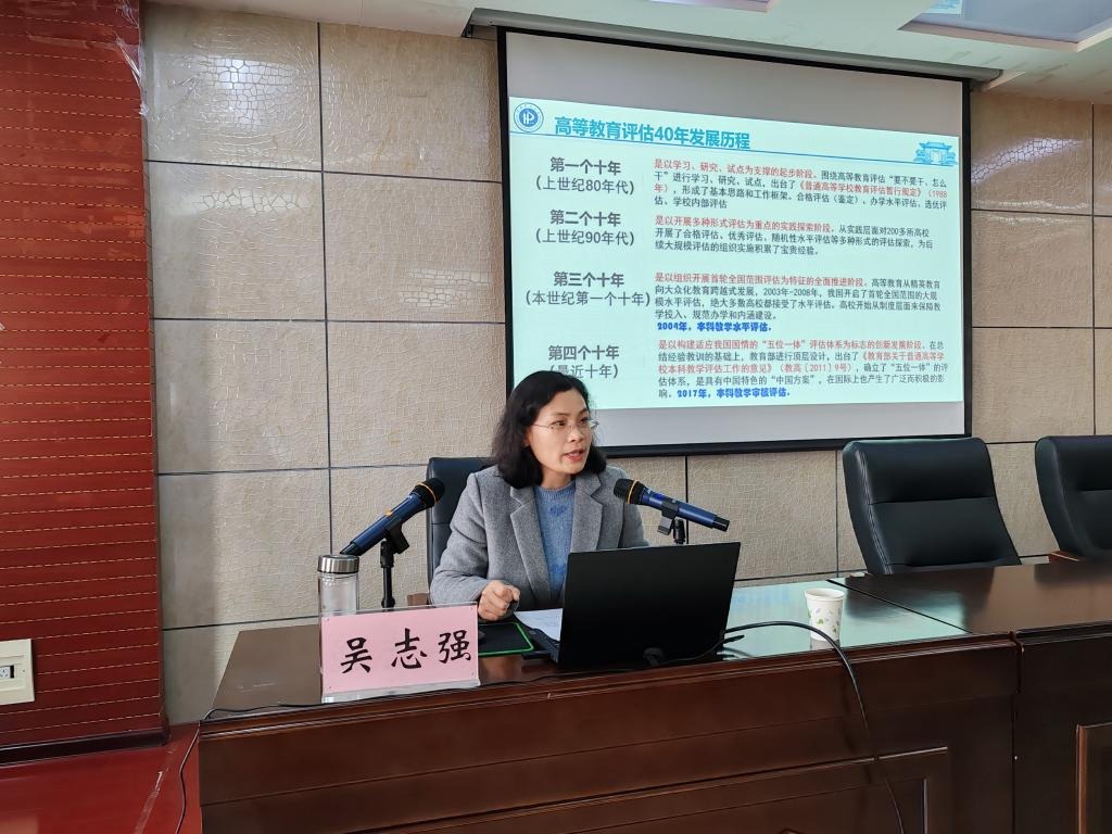 本网讯(通讯员 赵云会)应开云kaiyun官网邀请,教务处吴志强副处长于1月15日上午,为学院全体教工做了题为“做好新一轮本科教育教学审核评估 全面提升本科教育教学质量”的专题报告,学院领导班子和全体教师参加了会议,会议由牛海峰副院长主持。
