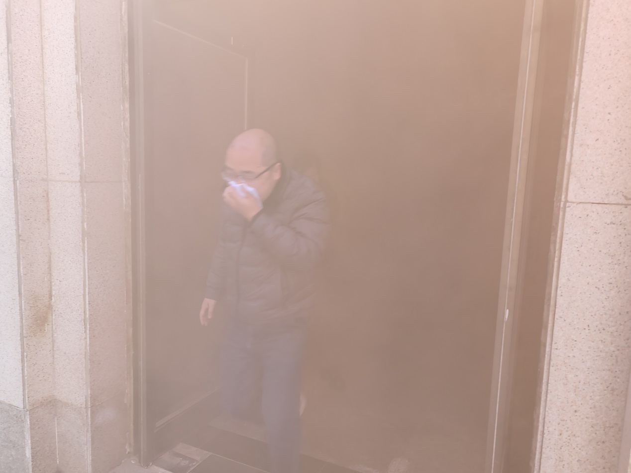 9日上午9时,学院处级领导干部、各系(部、中心)主任、各科室负责人等80多位老师和800多位同学参加了培训,后勤保卫处负责消防安全演练的李茂兴老师为全院师生作了演练培训。演练的内容包括:讲解和实操灭火器的使用、模拟火情逃生。模拟逃生环节,从警报响起到大家用湿毛巾捂嘴鼻到安全点集中完毕整个过程用时不到2分钟。