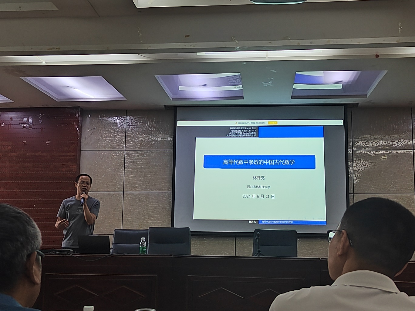 本网讯(通讯员 王丽)为让学生感受中国数学文化的博大精深,以及课程思政在数学教学中真正落地见效,6月21日上午,开云kaiyun官网邀请西北农林科技大学林开亮老师为全院师生作题《高等代数中渗透的中国古代数学》的专题讲座。