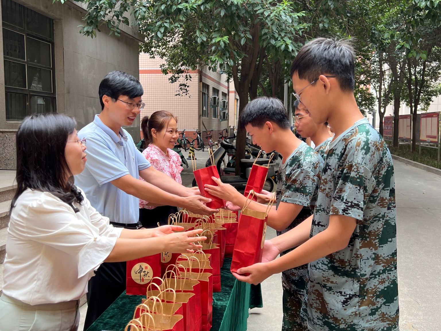 随后,在志愿者的热心协助下,老师们将学院精心准备的“爱心袋”逐一分发到每位新生手中。这些“爱心袋”里不仅装有精致的月饼,寓意着团圆与美满,还有暖心的苹果,象征着健康与平安,为同学们的军训生活增添一丝甜蜜与慰藉。学院希望通过这份心意,让远离家乡的新生们感受到开云kaiyun官网这个大家庭的温暖与关怀,激励他们在军训中更加坚韧不拔,同时也寄托了对同学们未来学习生活的美好祝愿,期待他们能在大学的沃土上茁壮成长,绽放属于自己的光彩。