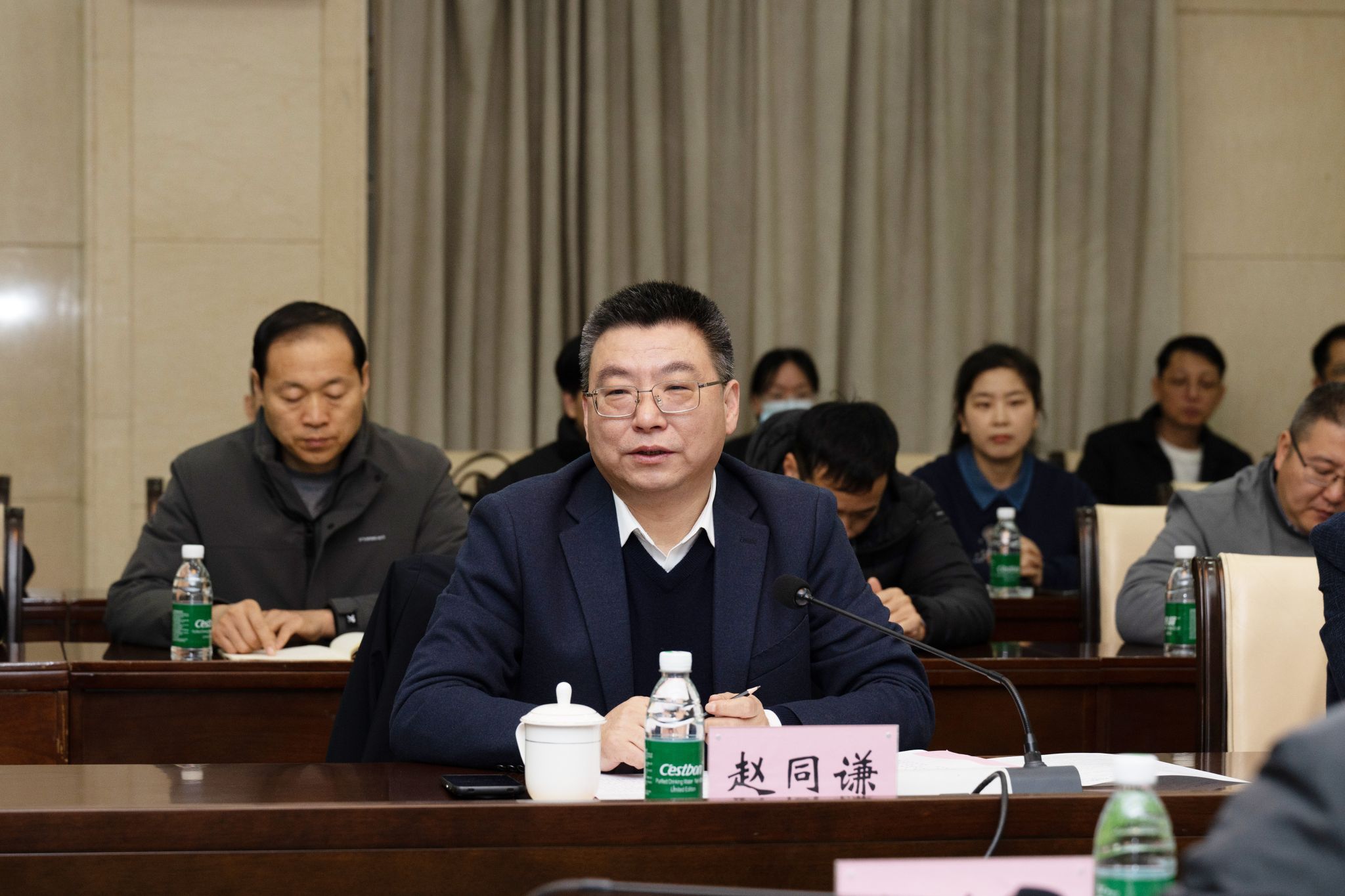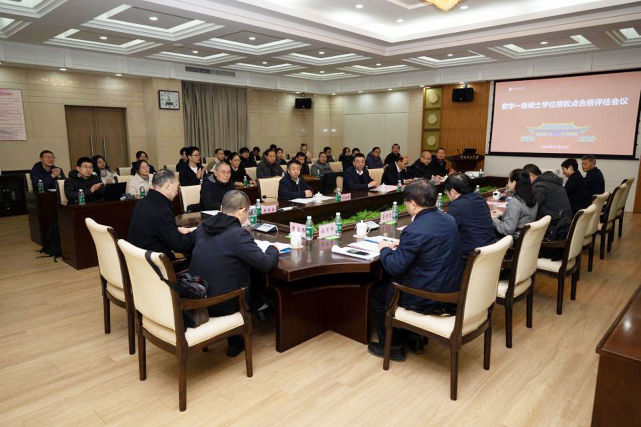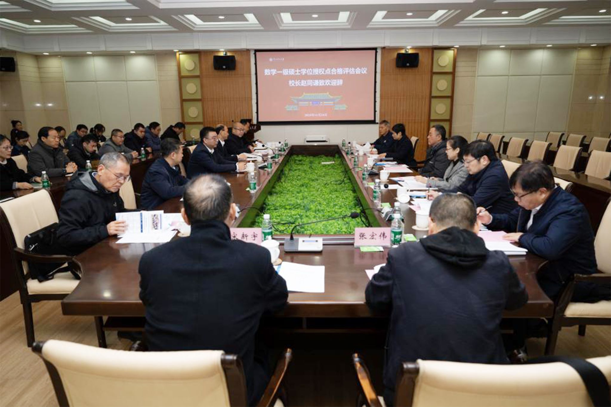 赵同谦代表学校致欢迎辞,向与会专家介绍了学校的基本情况,强调数学学科在我校“双一流”创建中的重要地位和作用,表示学校历来重视数学专业学位点建设,希望各位专家能为数学学科发展把脉问诊,多提宝贵建议,提高学位点建设质量水平;感谢各位专家一直以来对我校数学学科学位点建设的支持。