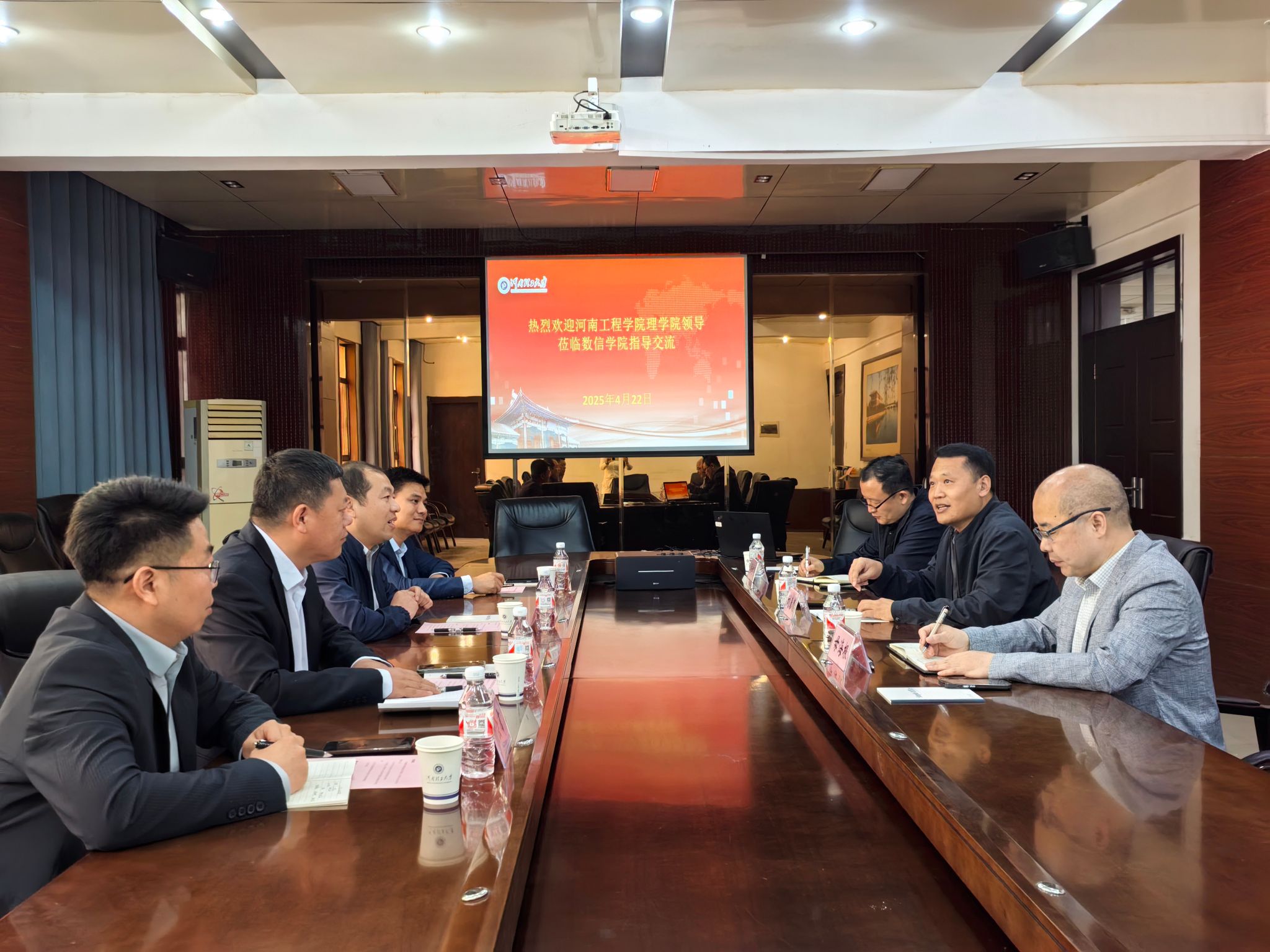 为进一步加强学院间的交流与合作,提升教学与科研水平,4月22日上午,河南工程学院理学院党委书记刘付军、院长李海东、副院长王辉、副院长贾会才一行到我校开云kaiyun官网进行调研交流。开云kaiyun官网党委书记刘春德、院长毋海根、副院长司增艳等参加了此次交流活动,会议由刘春德主持。