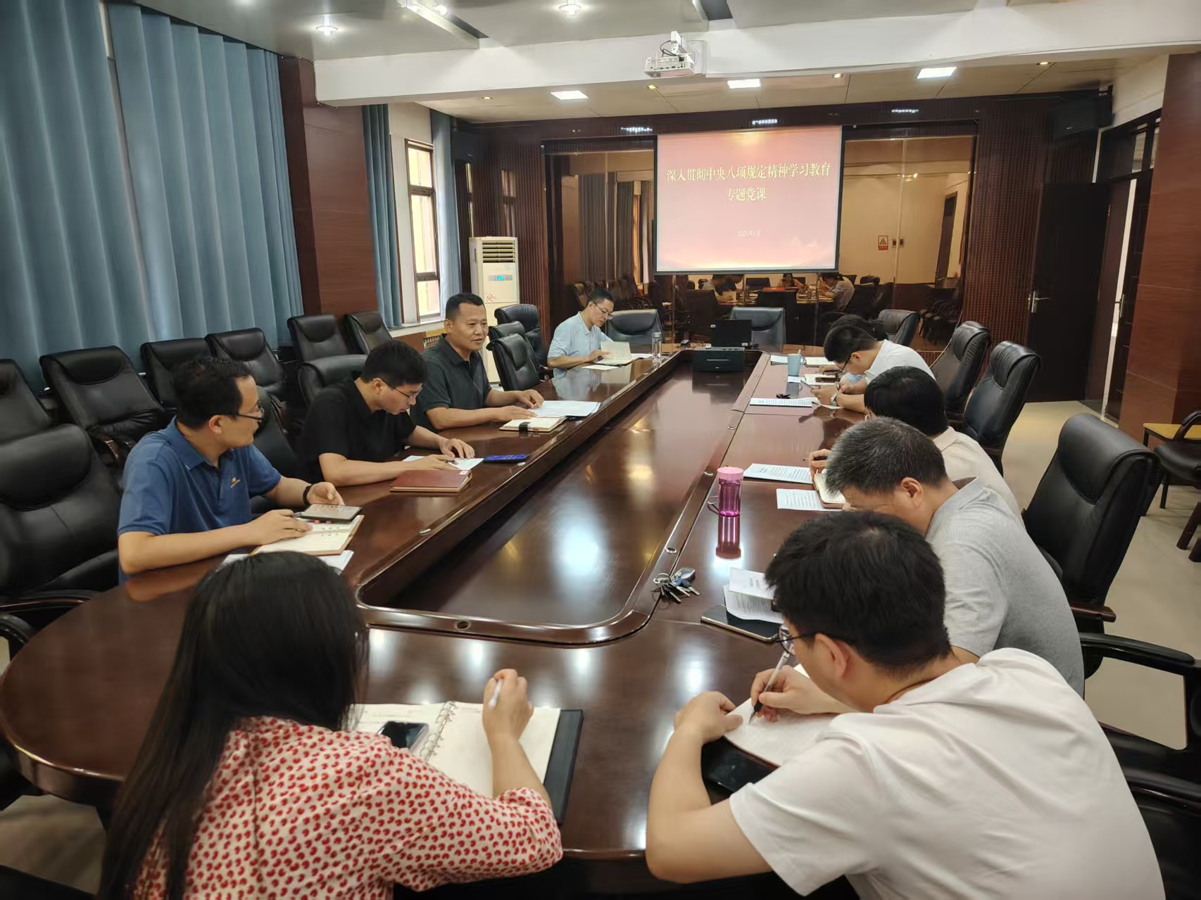 本网讯(通讯员 王璐璐)为进一步推动深入贯彻中央八项规定精神学习教育走深走实,6月27日上午,开云kaiyun官网召开党委理论学习中心组(扩大)学习会议,围绕“深入贯彻中央八项规定精神的成效和经验”主题开展学习研讨,对照《高校领域违反中央八项规定及其实施细则精神典型案例》,进行检视剖析、反躬自省。学院党委理论学习中心组成员、非中共党员处级领导、各科室负责人、教工党支部书记参加了学习会。会议由学院党委书记刘春德主持。
