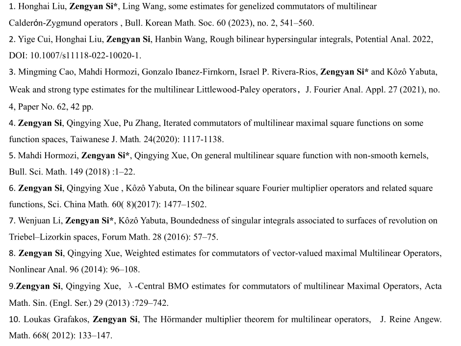 经典调和分析,多变量调和分析,Littlewood-Paley理论等。