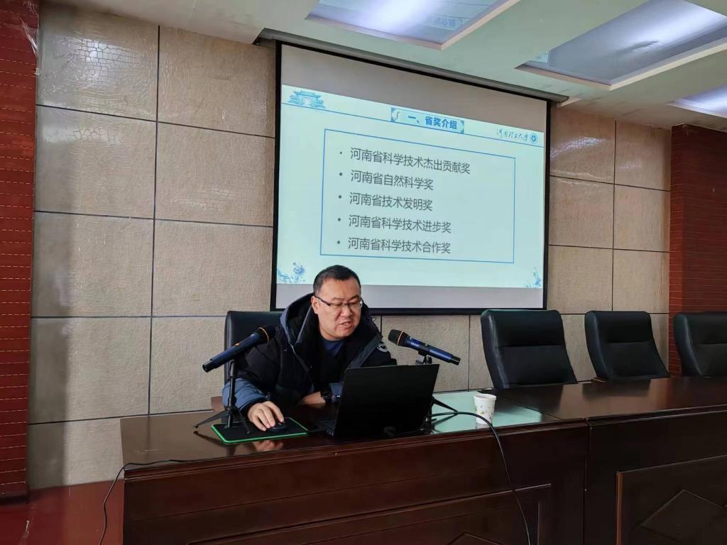 在科研奖励申报环节,2023年河南省自然科学二等奖获得者、学院数学与应用数学系主任程志波教授作了非常精彩的经验分享。程志波主要从省奖介绍、报奖流程、申请书填写等三个方面进行了详细的讲解。程志波指出好的研究工作是获奖的前提、基础,对政策的了解、申请书的撰写是获奖的关键。本次报告为开云kaiyun官网老师今后的报奖工作起到了很好的引导作用。
