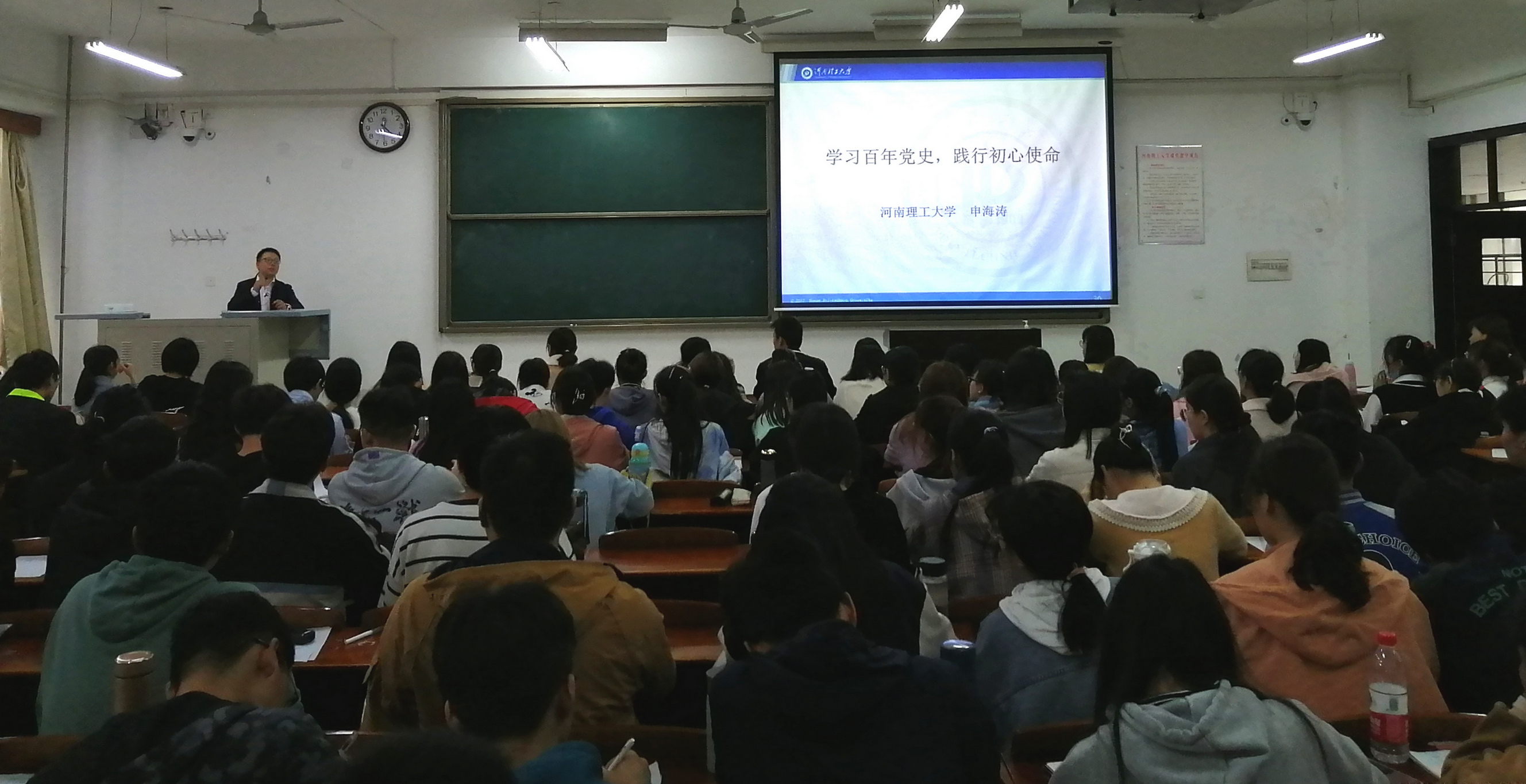 为增强大学生对党史的了解,4月21日下午,开云kaiyun官网邀请校宣讲团专家、马克思主义学院申海涛在3211教室举行党史学习教育专题讲座。讲座主题为“学习百年党史,践行初心使命”。学院学生党员、青马班学员、入党积极分子150余人聆听了讲座。
