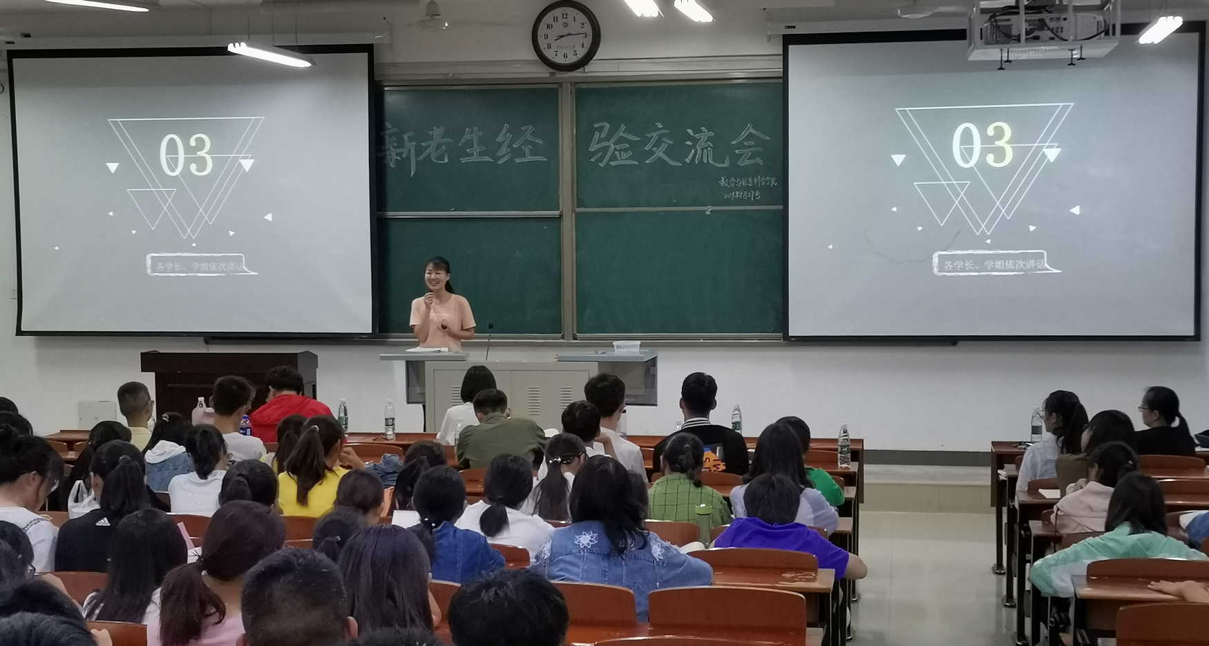 一次次热烈的掌声,一次次认真的记录,一次次欢笑过后的思考,交流会不仅为新老生提供了一个很好的交流平台,也让广大新生对自己的学习和生活有了明确的定位和目标,激励他们为成长为优秀的大学生而努力奋斗。