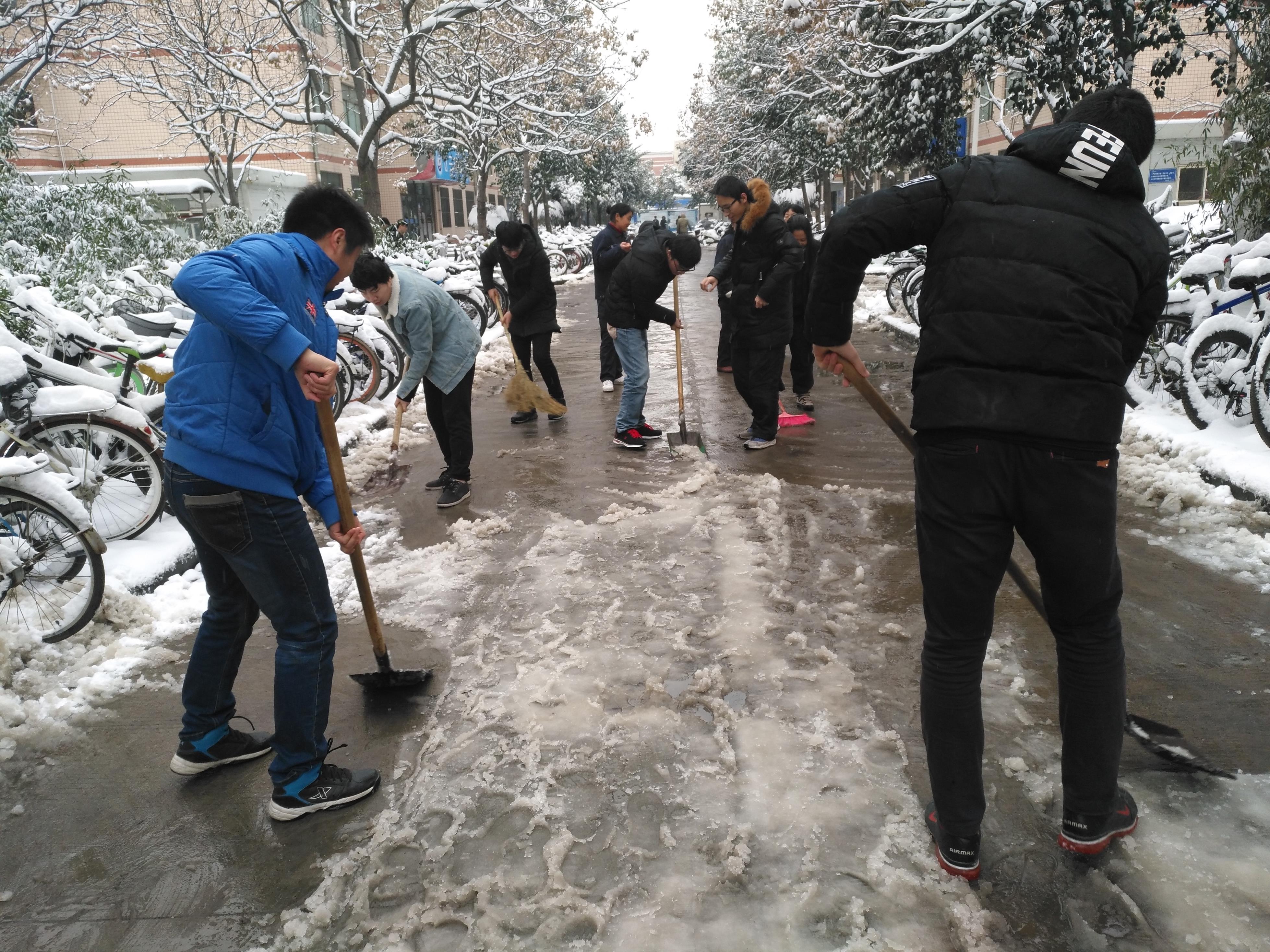 忽如一夜春风来,千树万树梨花开。一场大雪给校园带来惊喜和美丽的同时,也带来了一些出行不便。为了清除道路积雪,方便师生出行,开云kaiyun官网团委组织团员青年志愿者于1月4、5日集中清扫了学院学生宿舍楼和学院楼附近道路的积雪。
