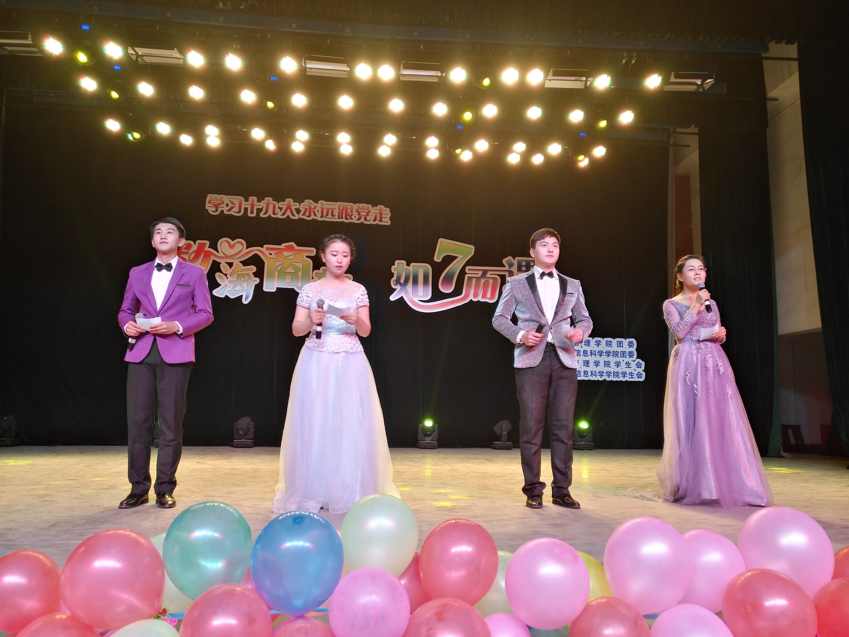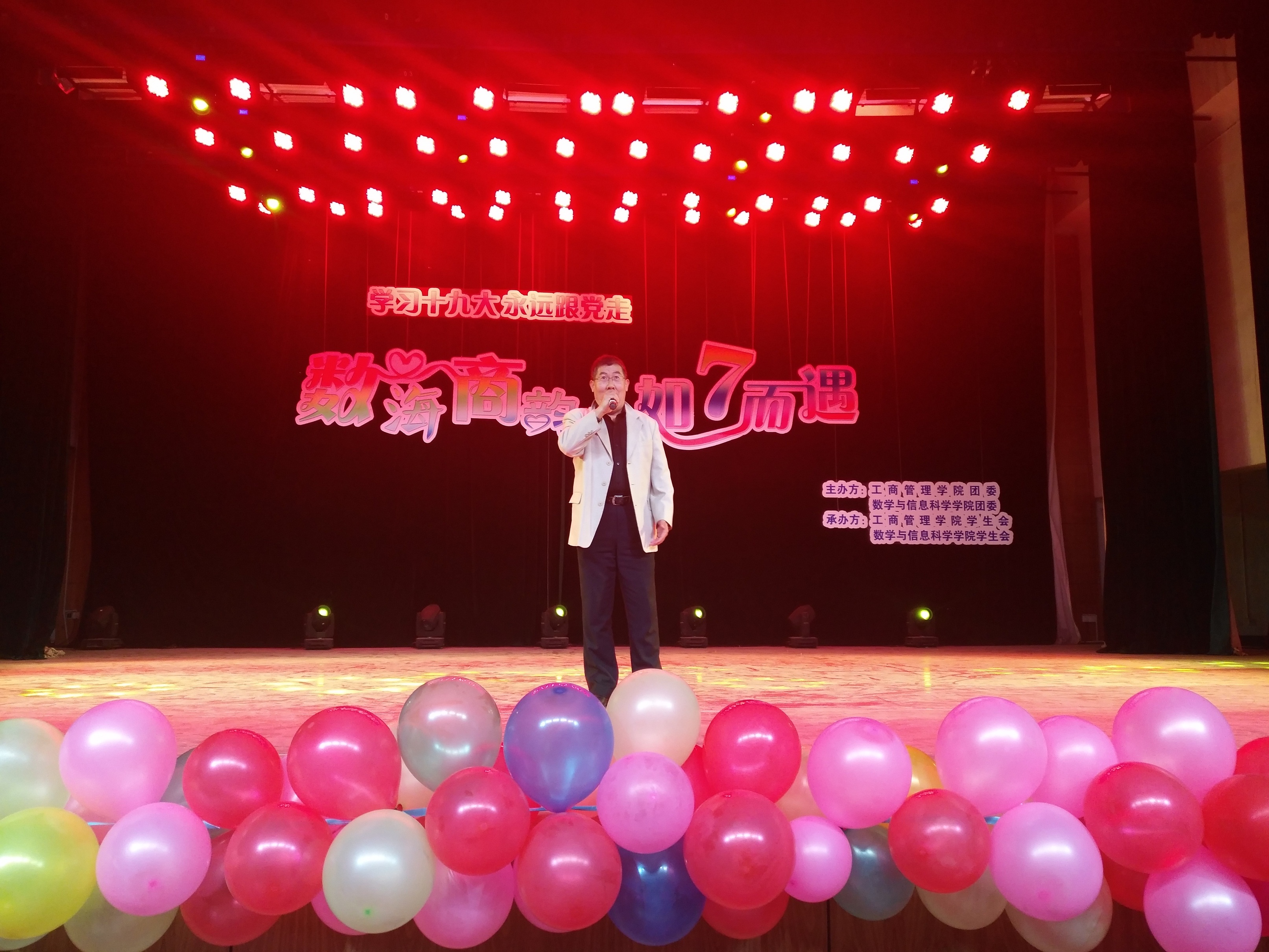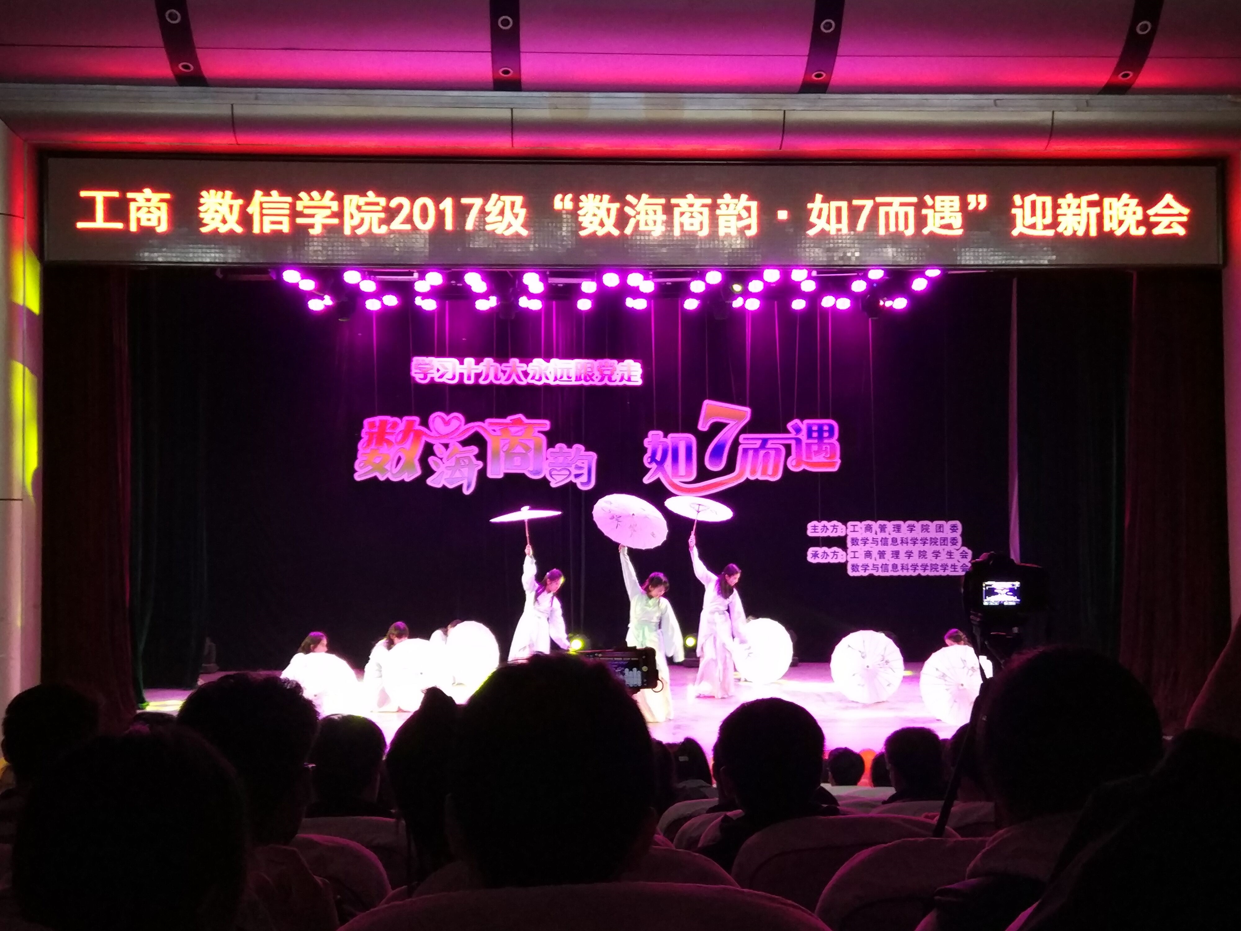 秋风送爽迎新夜,欢歌笑语齐飞扬。10月29日晚,以“学习十九大,永远跟党走”为主题的“数海商韵·如7而遇”迎新晚会在我校南校区小礼堂激情上演。学校近千名师生共同观看了演出。