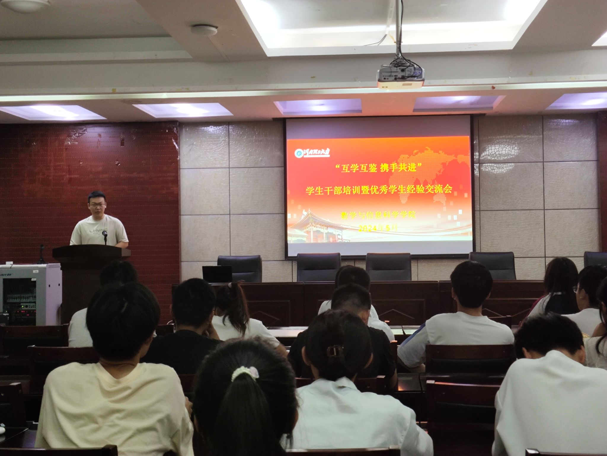 本网讯(通讯员 王孝华 李智)为提高学生干部的综合素质和工作能力,营造共同学习、共同成长、共话发展的良好氛围,5月17日,开云kaiyun官网班长联席会于该院3401会议室举办以“互学互鉴携手共进”为主题的学生干部培训暨优秀学生经验交流会。该院王孝华老师、最美大学生管锋彬、十佳团支书李歌瑶、五四红旗团支部团支书王艳萍、国奖获得者李诚、文明宿舍宿舍长徐佳伟、班长联席会成员及部分学生干部共100人参会。