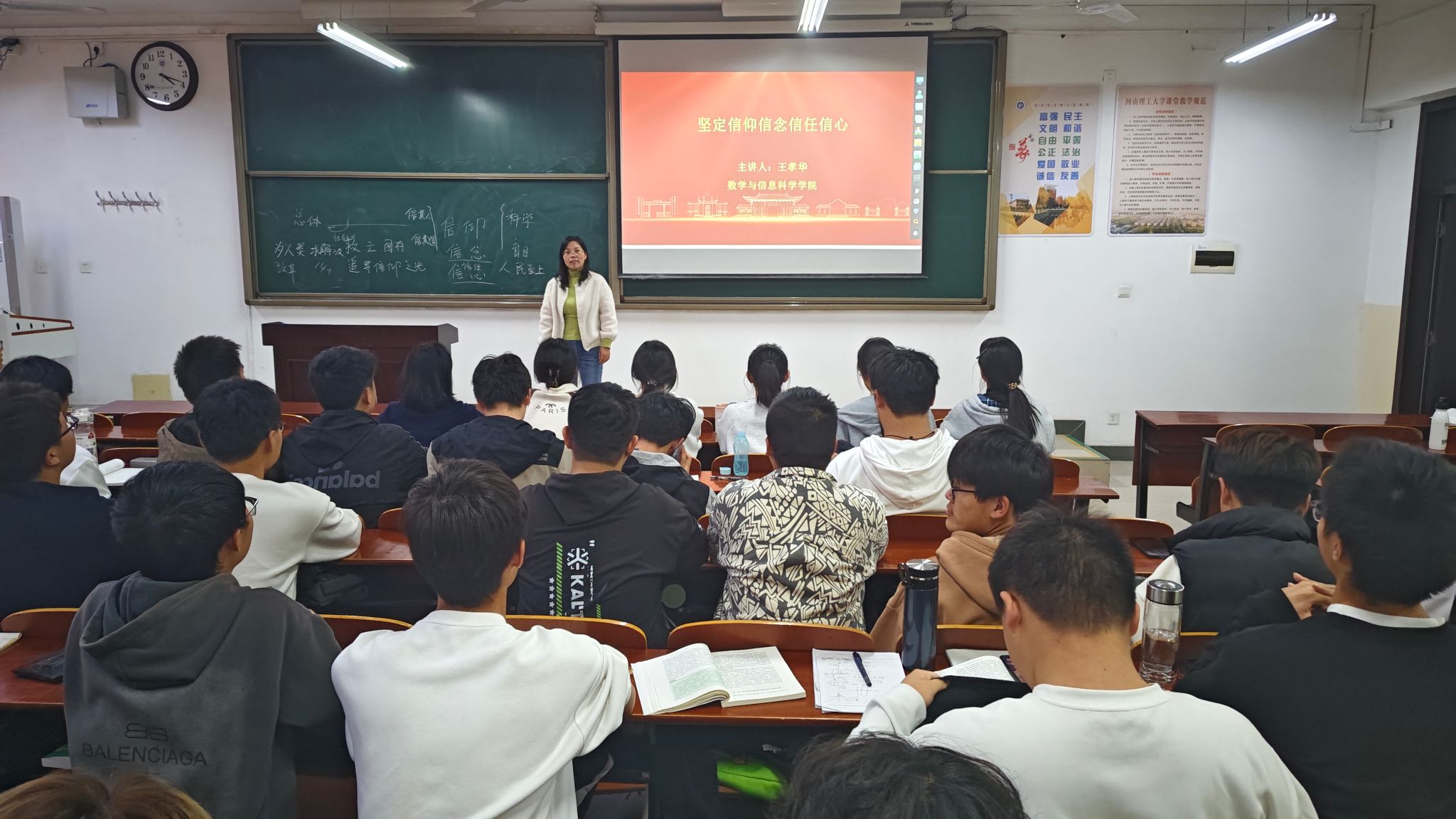 为深化学生对马克思主义、中国特色社会主义、中国共产党以及中华民族复兴的认识和理解,激发学生为实现中华民族伟大复兴的中国梦而努力奋斗的坚定信念和信心,10月24日下午,学院在3408室开展以“坚定信仰信念信任信心”为主题的理论宣讲。本次活动由王孝华老师担任主讲,2022级学生干部参加。