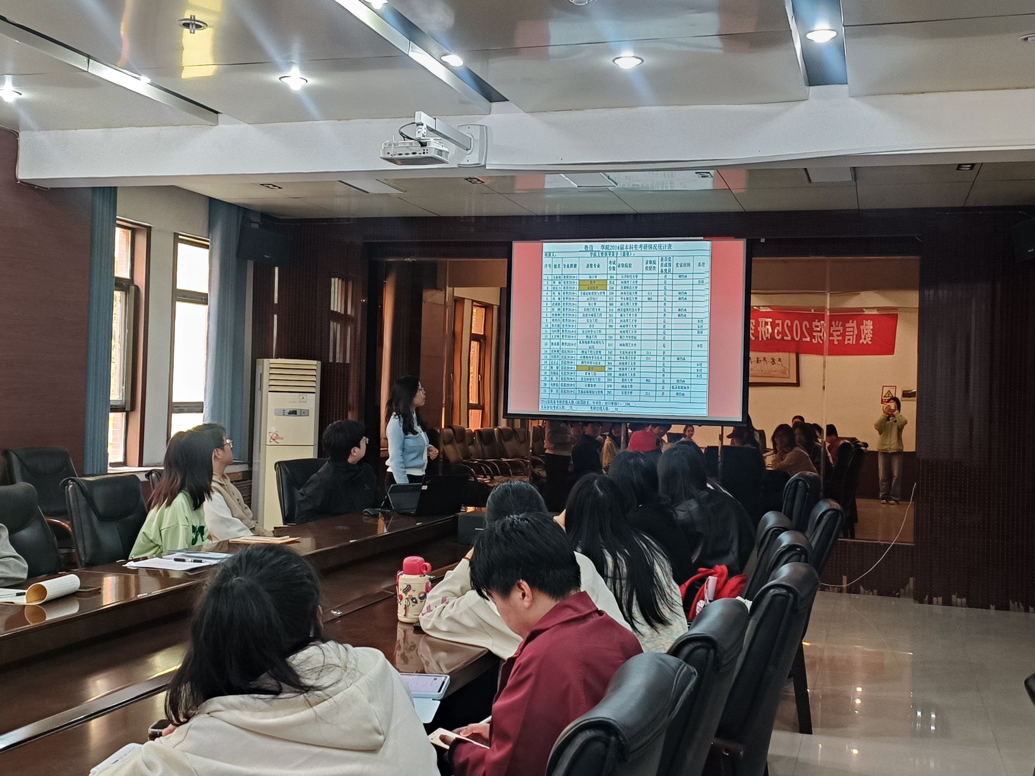 班会上,该院2022级辅导员王孝华首先结合该院历年毕业生去向数据,向同学们展示了近年来学院毕业生的多元化发展路径。通过直观的数据图表形式,深入分析了考研录取率、就业行业分布、薪资水平等关键指标的变化趋势。提醒大家无论是选择考研还是就业,都需要结合个人兴趣、专业特长和行业需求,尽早制定清晰计划。王孝华寄语同学们以本次班会为起点,把“规划图”变成“施工图”,让“时间表”成为“计程表”,以主动姿态规划人生,赢得未来。学院将持续提供个性化指导,助力每一位学生成长成才。