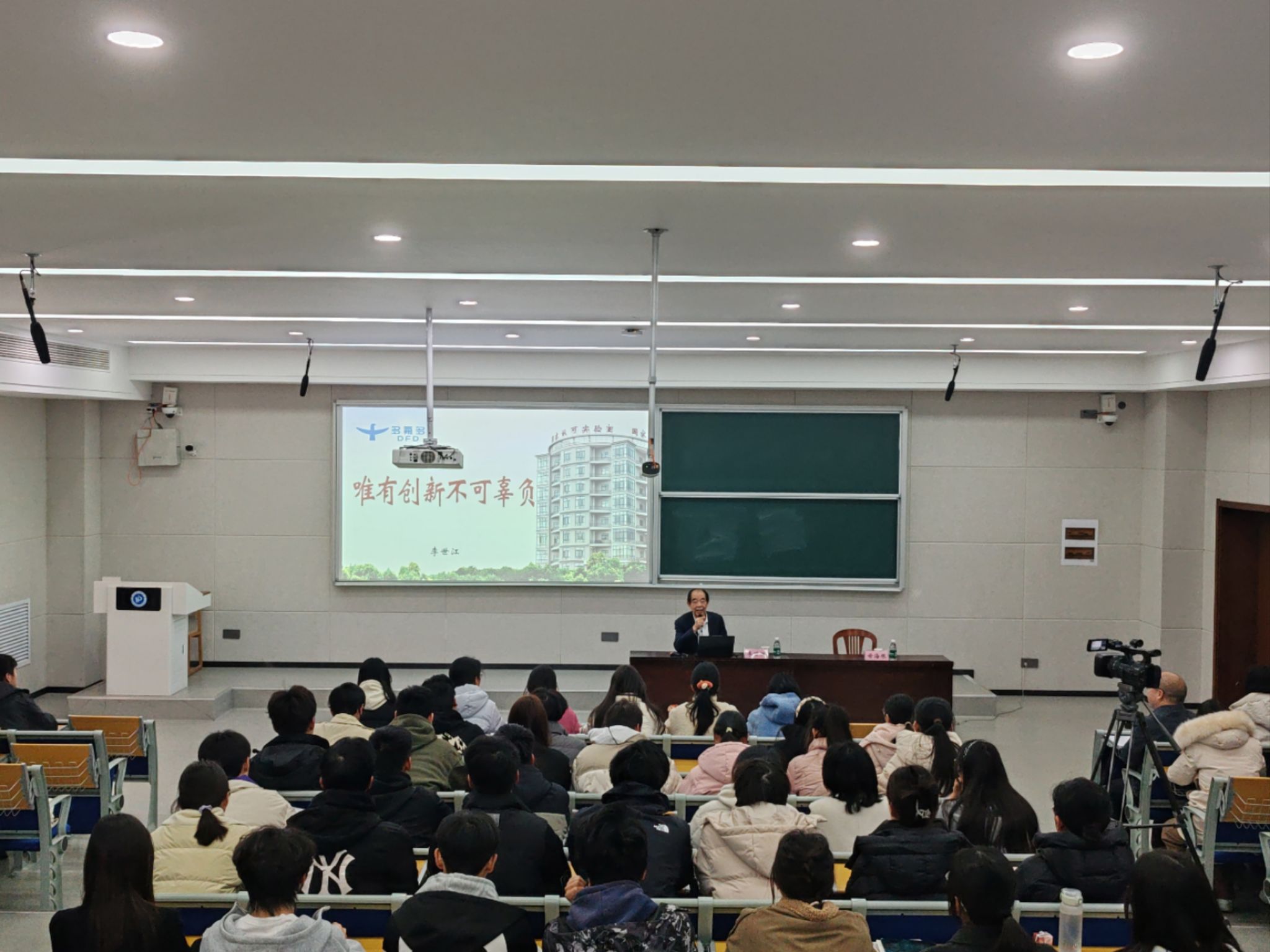 在开学第一课中,董事长李世江以多氟多 “五个一” 智慧平台为切入点,系统阐述了企业在半导体材料、硼同位素、钠电池等领域的科技创新历程,结合 AIGC 垂直行业场景应用、安全大模型等前沿技术,深入剖析了数学与工业场景的深度融合路径。他强调,“数学是科技创新的核心驱动力,唯有将数学原理与产业需求紧密结合,才能真正实现技术突破。” 精彩演讲激发了师生对数学应用价值的深刻思考,现场互动氛围热烈。
