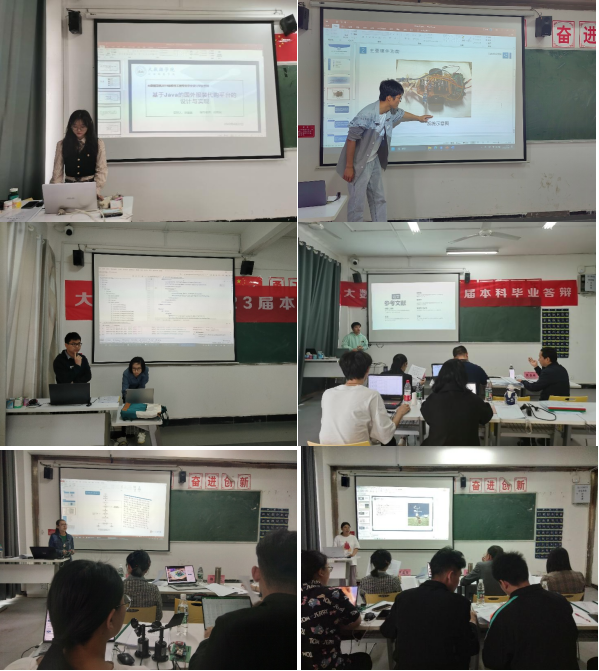 答辩会上,同学们着装得体,精神饱满,准备充分,结合PPT阐述并现场演示系统作品,同学们对自己所开发出的系统功能进行了详细说明。每个组的答辩委员对学生的毕业设计中的创新之处给予了肯定,而且对存在的问题提出了修改建议,并参照选题质量、摘要和毕业设计质量这三方面对学生的答辩情况进行了严格评分。
