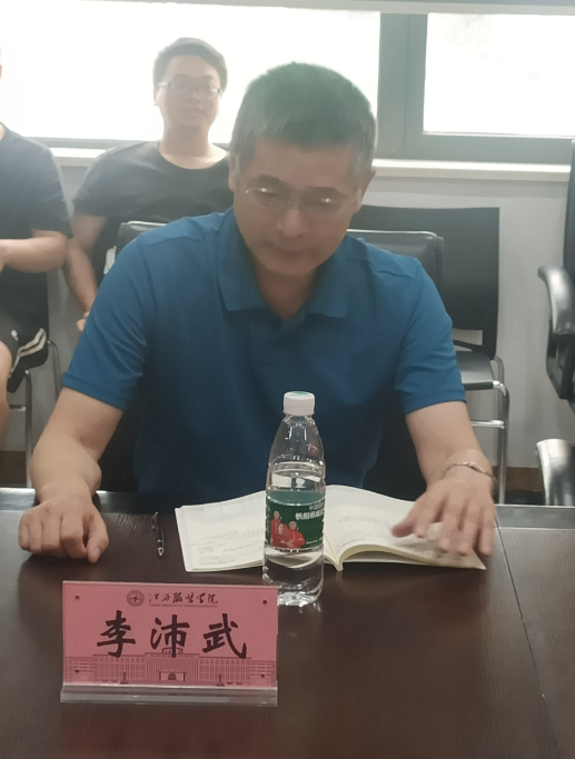 最后,分管校领导李沛武副校长作工作指示,首先肯定了本学期取得的成绩,对大家的付出表示感谢;其次鼓励每位教师都要积极做科研,通过科研提升自己的科研能力与教学质量,尽快提升自己的职称;最后表示大家团结一致,各司其职,为学校的申硕建设、审核评估做出更大的贡献。