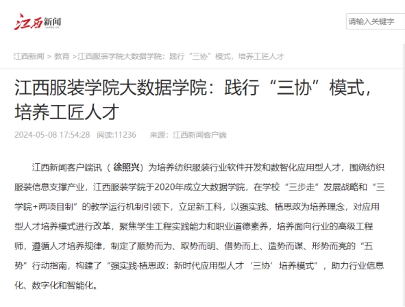 江西新闻网||江西服装学院KY开元集团官网践行“三协”模式,培养工匠人才