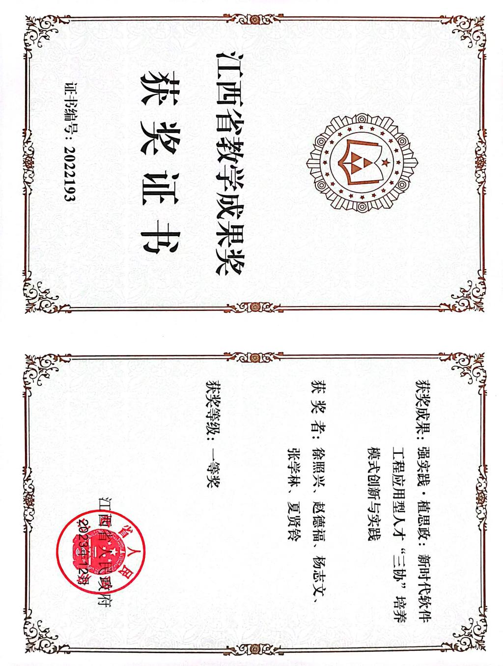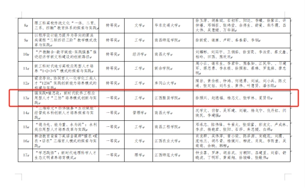 【KY开元集团官网讯】2023年10月26日,江西省教育厅公示了2022年江西省教学成果奖拟获奖项目名单,开元官网教师徐照兴教授主持的《强实践•植思政:新时代软件工程应用型人才“三协”培养模式创新与实践》教学成果获评高等教育类一等奖。