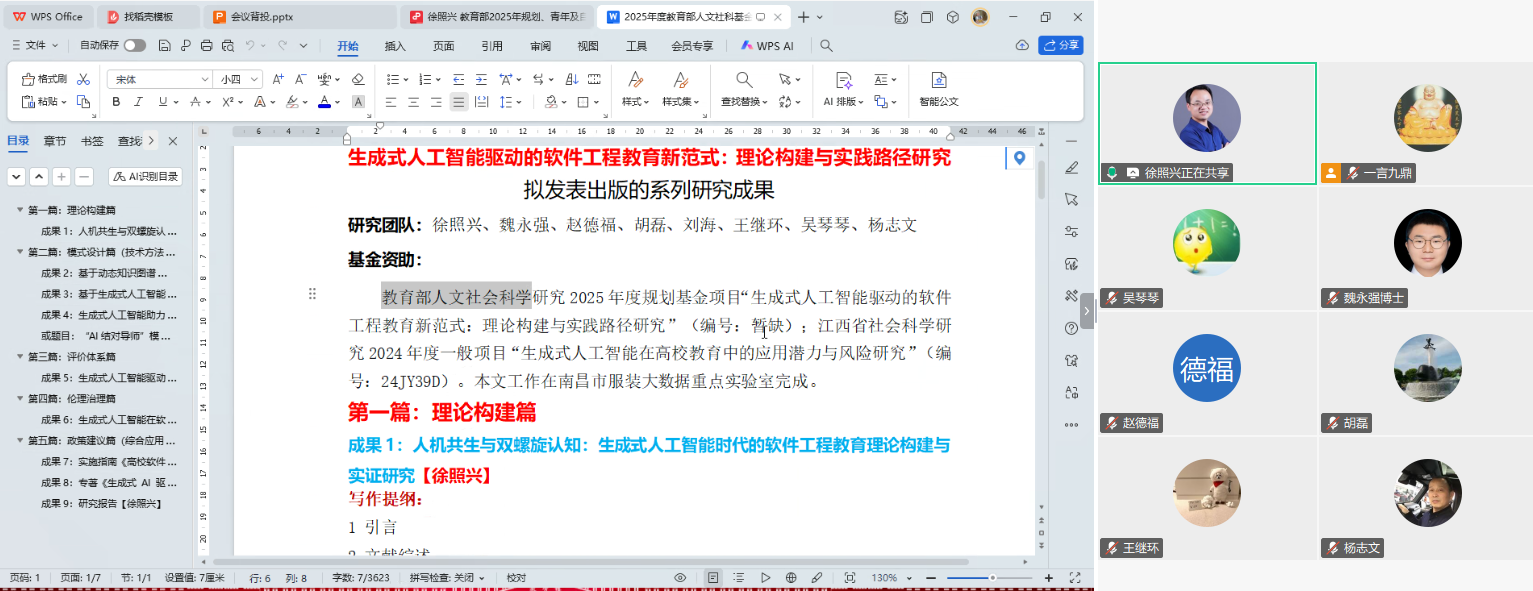 【KY开元集团官网讯】2025年10月7日晚,KY开元集团官网以线上形式召开2025年度教育部人文社科规划项目—“生成式人工智能驱动的软件工程教育新范式:理论构建与实践路径研究”开题报告会。会议由项目主持人KY开元集团官网院长徐照兴教授主持,核心目标是使全体课题组成员再次明晰课题研究方向、研究内容、分析研究任务及初步研究分工,为后续研究有序推进奠定基础。