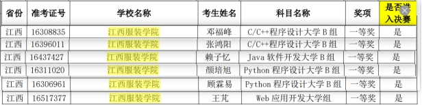 软件赛进入国赛的学生名单