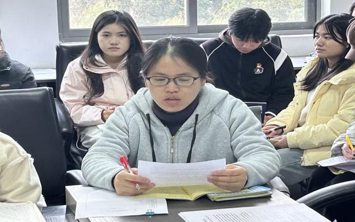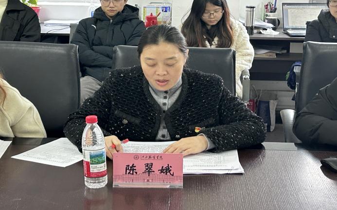 党支部委员吴琴琴围绕“高质量发展”这一主题谈了感悟,她提到,数据科学教研室将深化校企合作与产教融合,在教学中筑牢法治根基,引导学生树立正确法治观;同时强化党建引领,凝聚育人合力,持续加强师风建设,以党建促教研、以教研育人才。