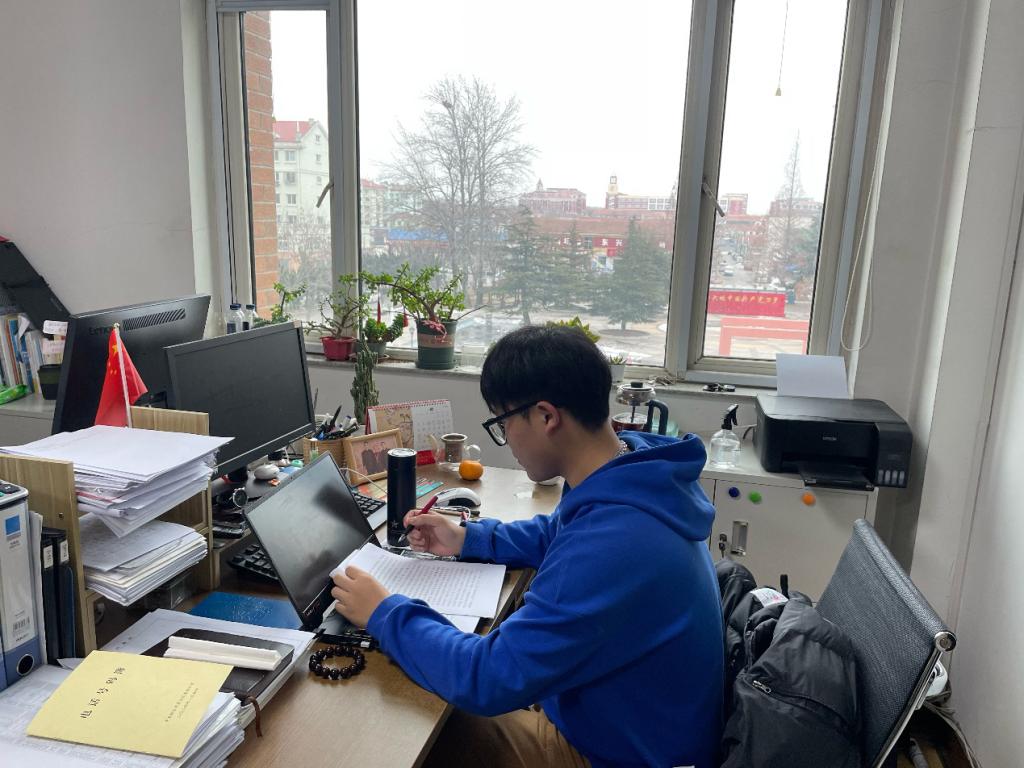 寒假期间,房旭同学参与到了由共青团山东省委发起的“青鸟计划”,来到了当地的街道办的党政办公室进行了为期一个月的政务实习,实习的主要内容有协同办公、走访调研、年鉴汇编、会场布置、童心支教、基层宣讲等政务工作。