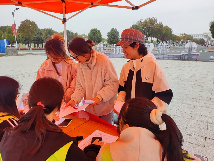 为了本次活动顺利开展,在活动开始前,各院学生会早早到达指定位置,做好准备工作,以迎接学生的到来。学生会为同学们准备了问卷,待同学们回答问题后,可以获得所在摊位盖章,集齐所有盖章后,便可前往校学生会领取奖品,这些互动性的举措极大地提高了同学们的参与热情,来参与的同学络绎不绝。